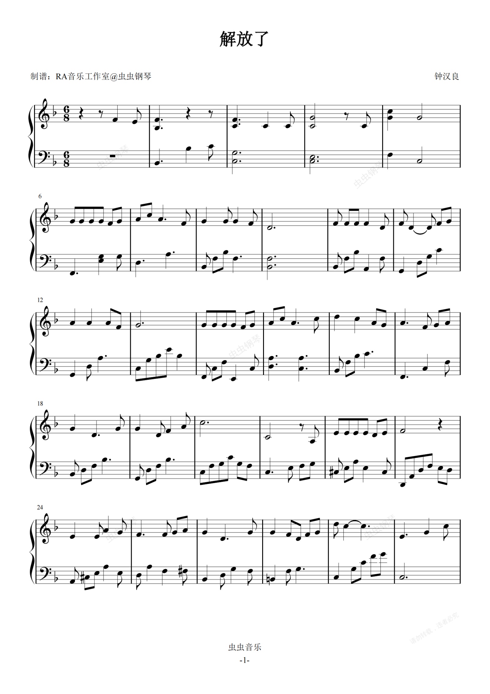 钢琴谱:钟汉良-《解放了》-钢琴演奏谱