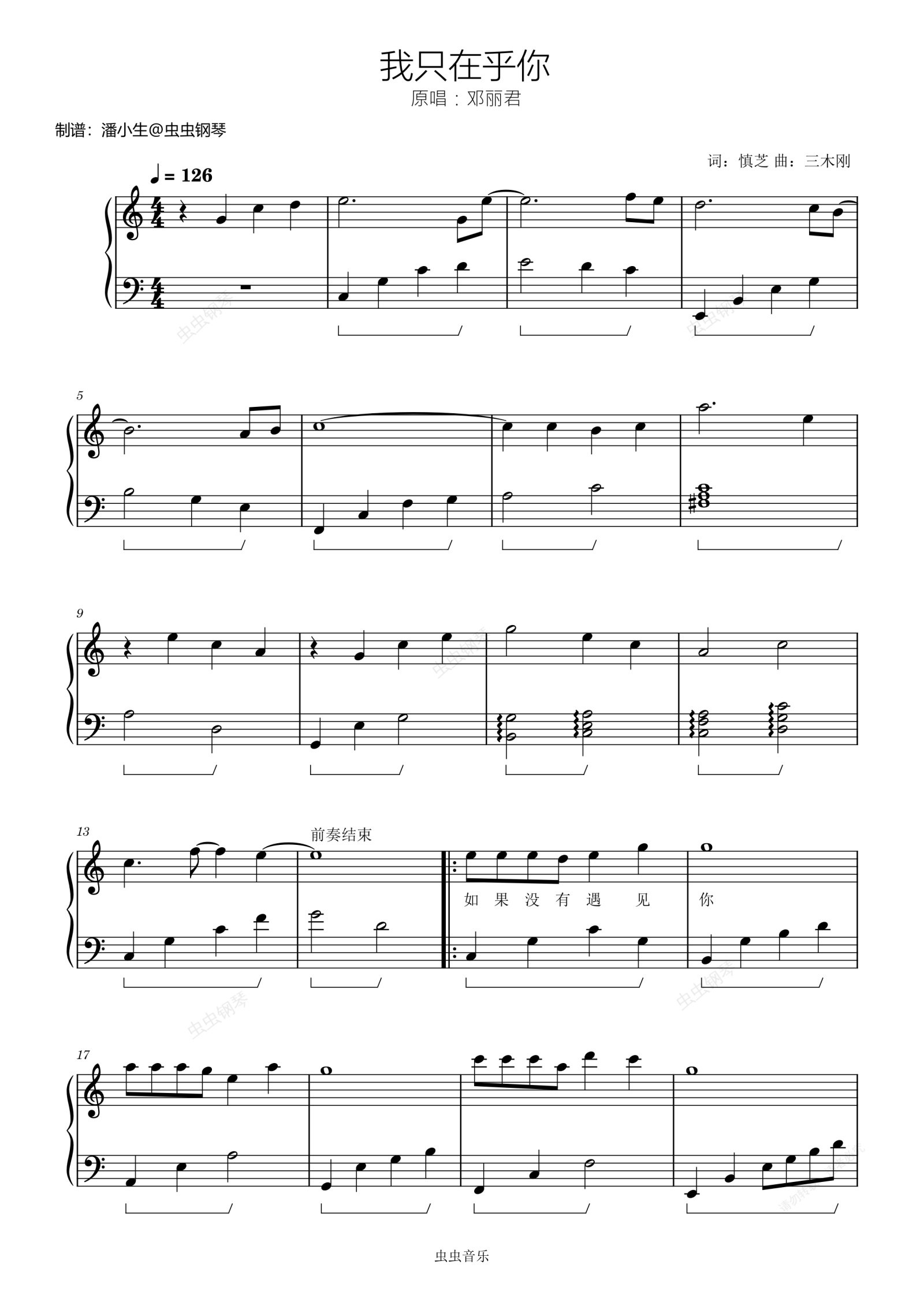 钢琴谱:《我只在乎你》,C大调简单版,初学者优选,邓丽君