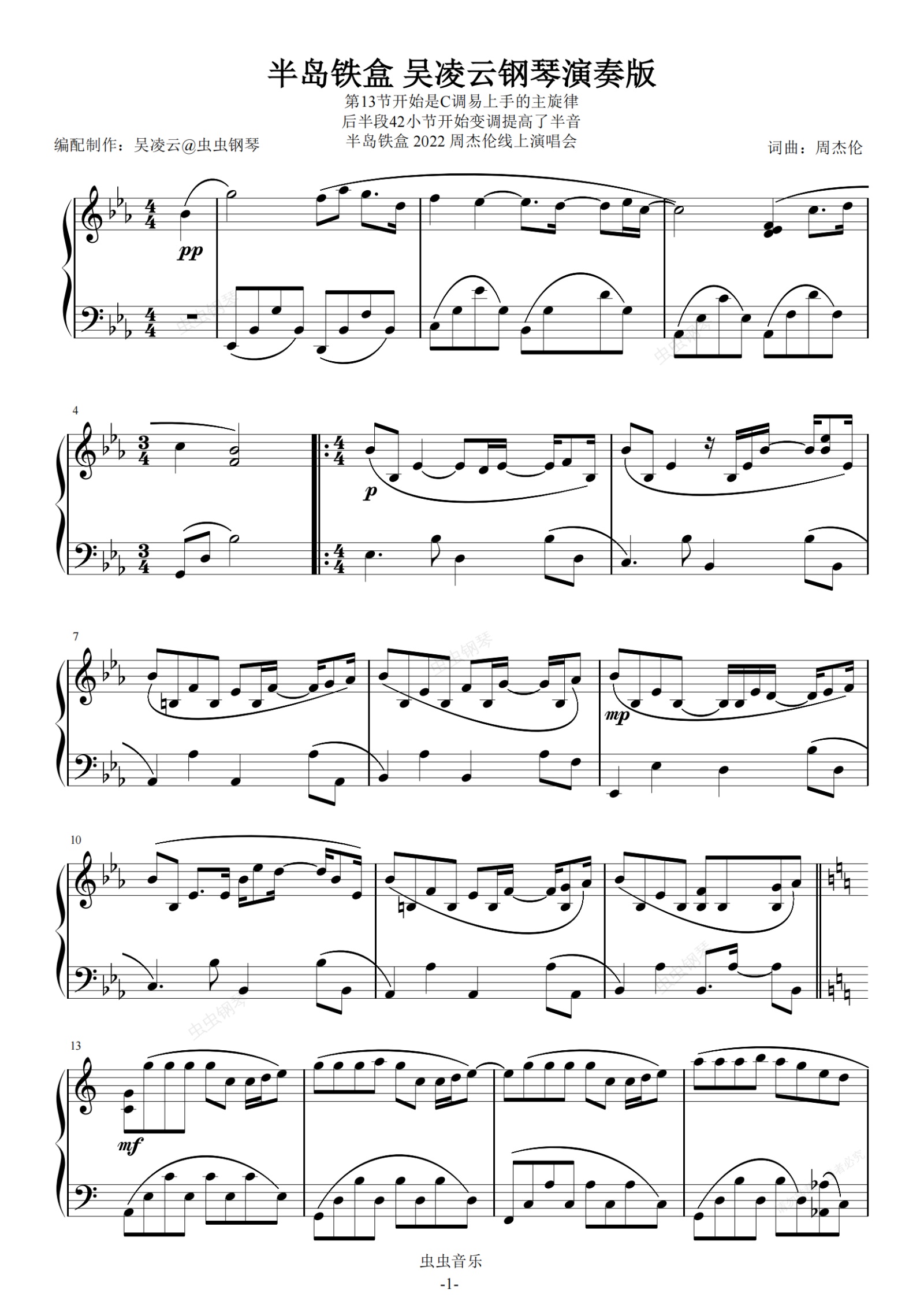 钢琴谱:半岛铁盒 吴凌云钢琴演奏版  2022 周杰伦线上演唱会