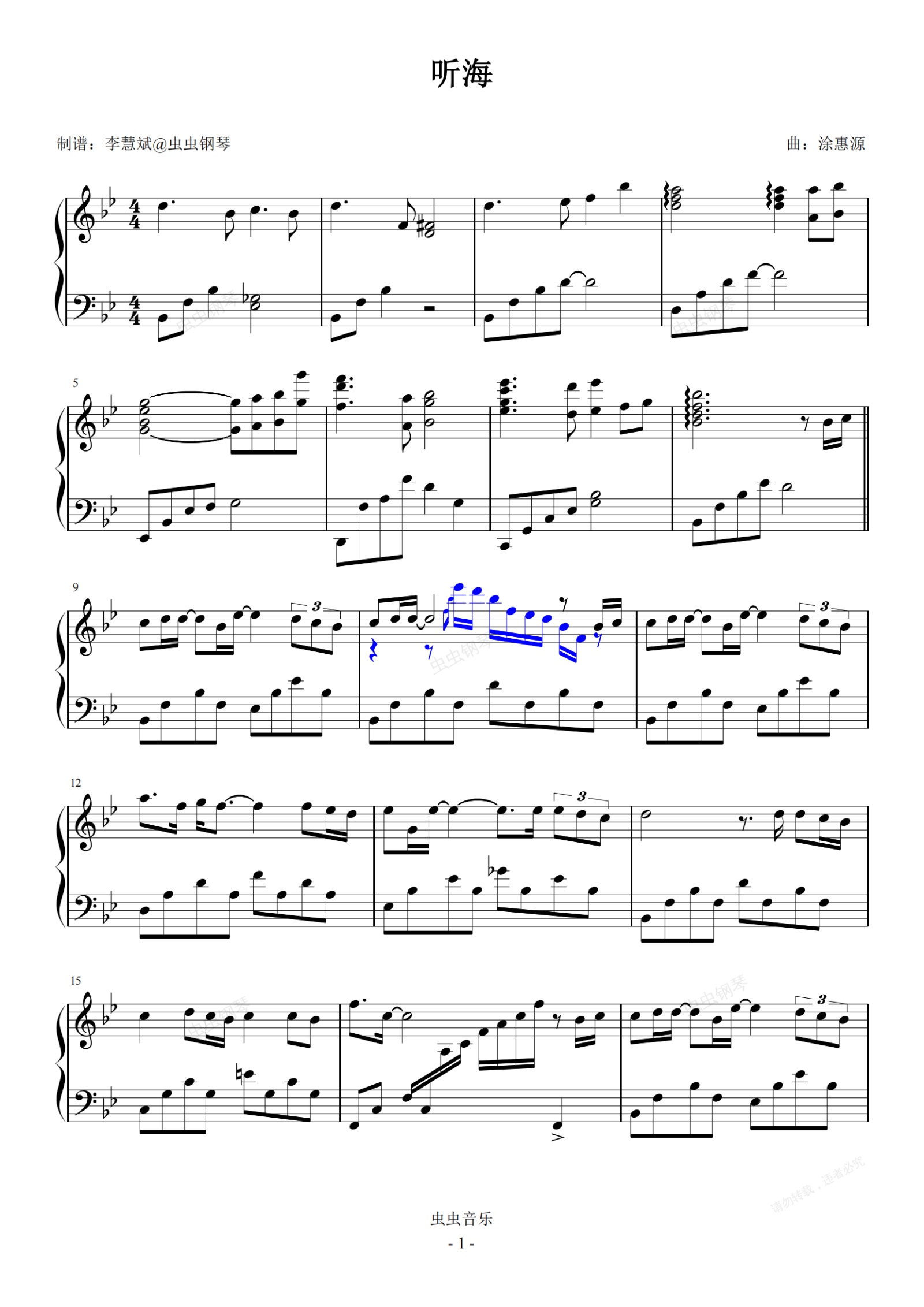 钢琴谱:听海