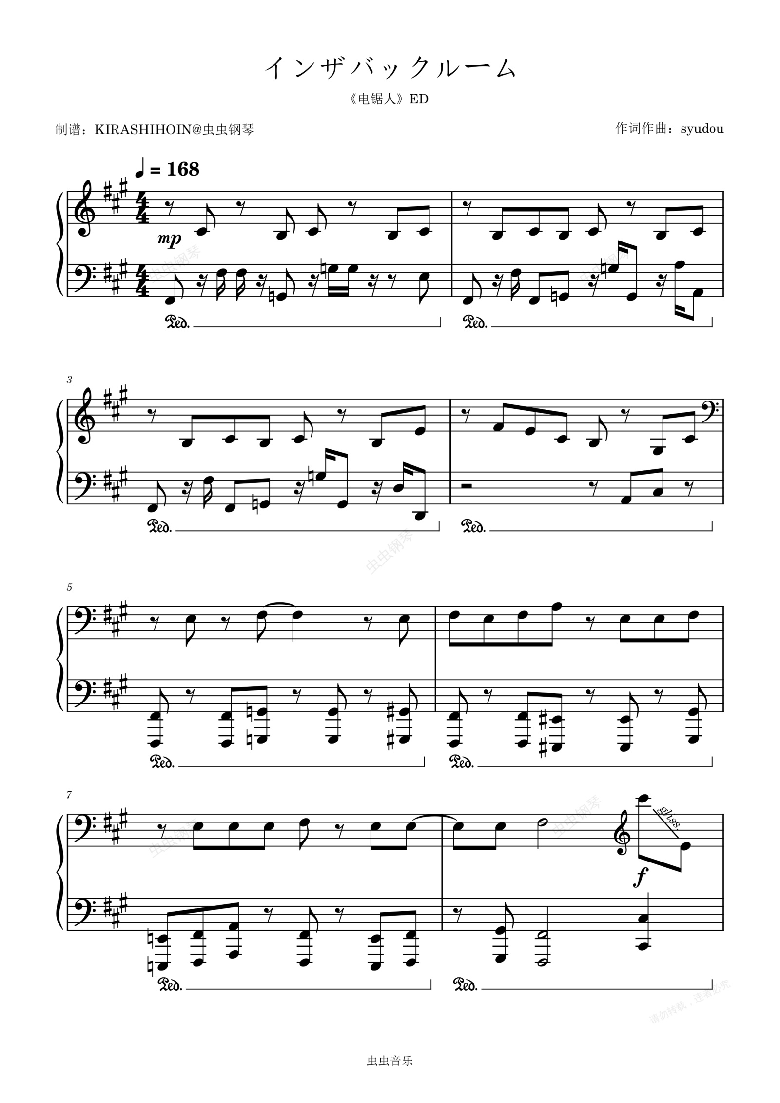 钢琴谱:インザバックルーム(《电锯人》ED/片尾曲)- syudou