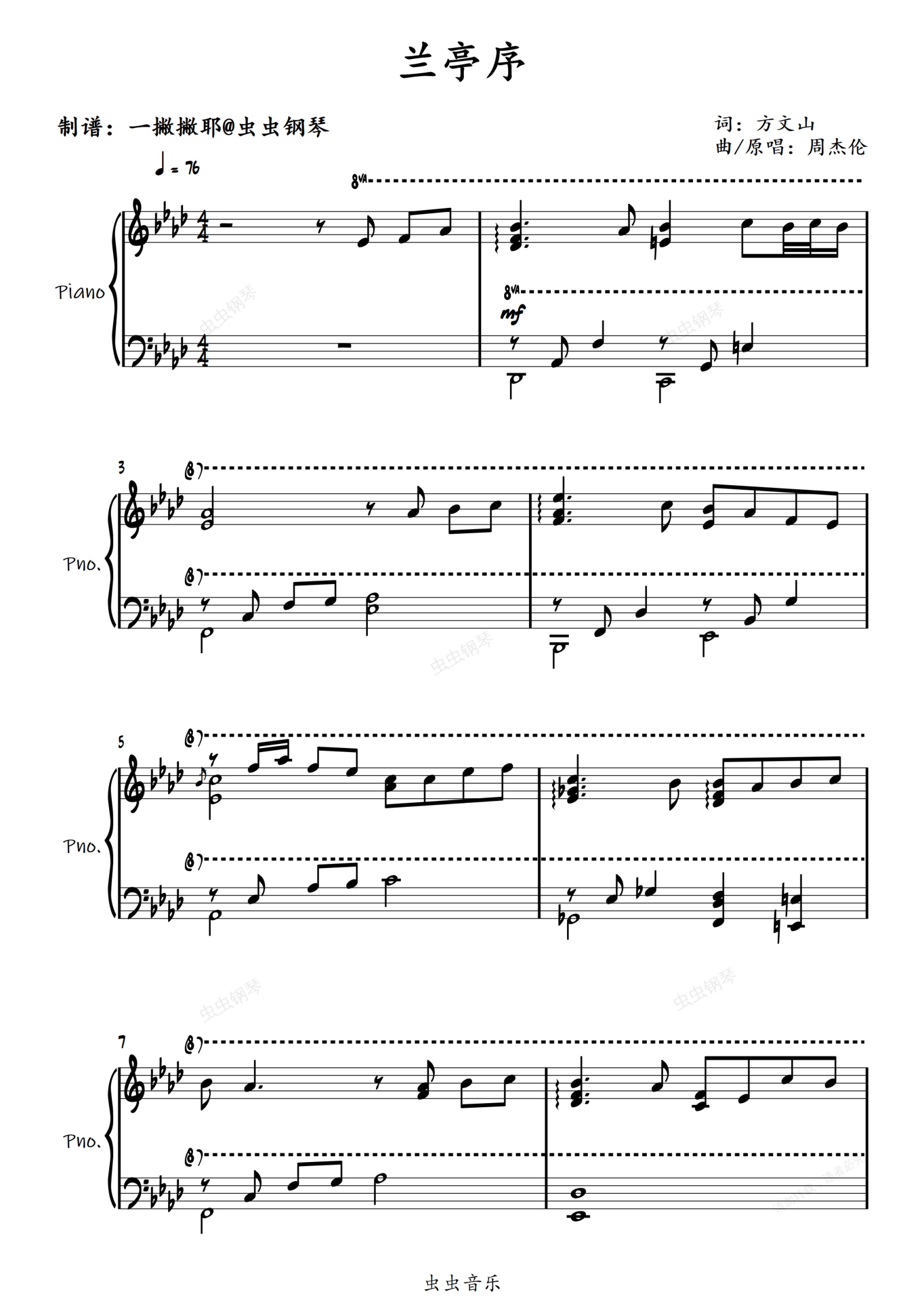 钢琴谱:周深升调版弹唱《兰亭序》周杰伦「一撇撇耶」