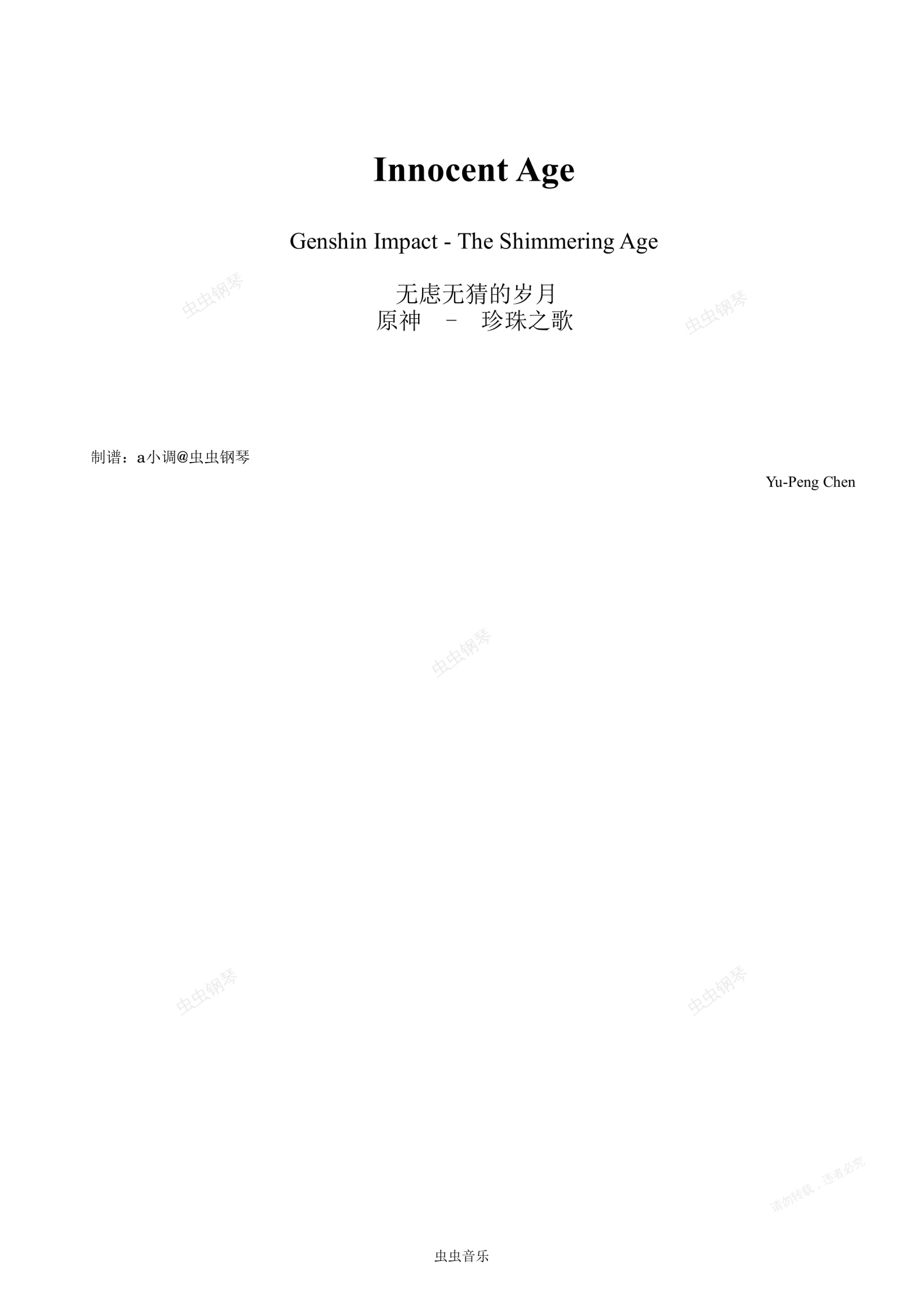 钢琴谱:Innocent Age 无虑无猜的岁月 原神 - 珍珠之歌
