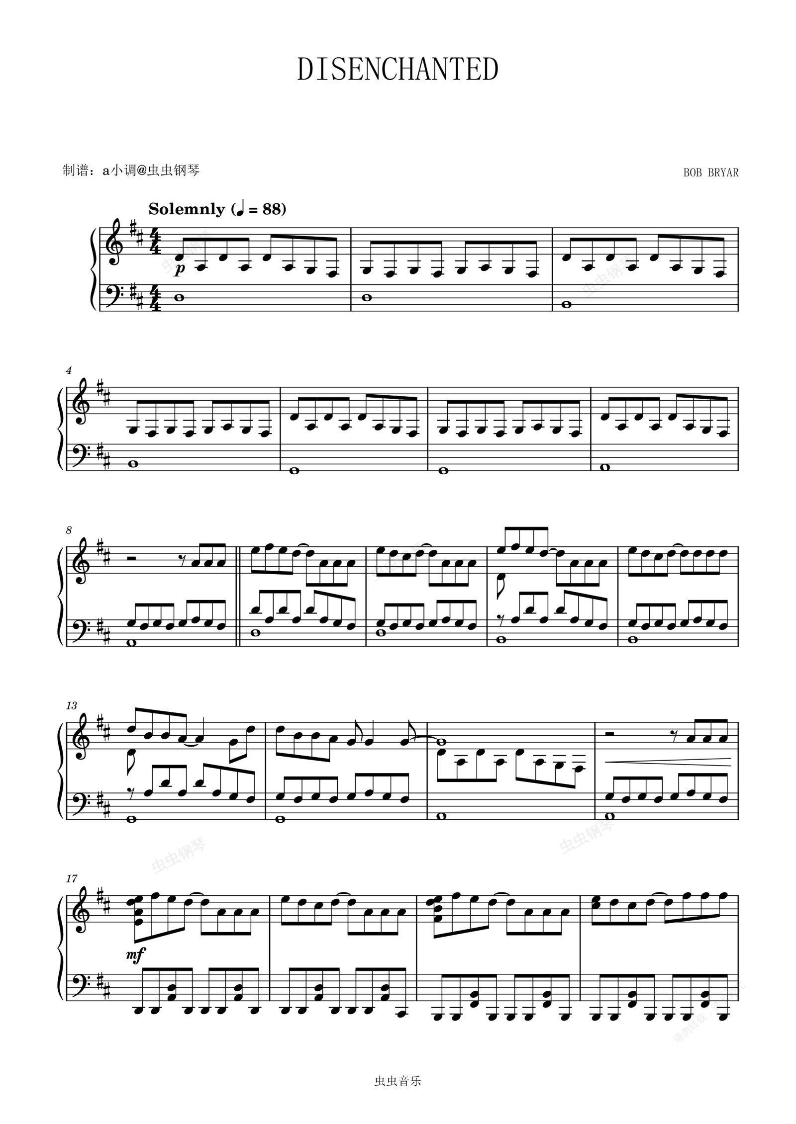 钢琴谱:DISENCHANTED BOB BRYAR