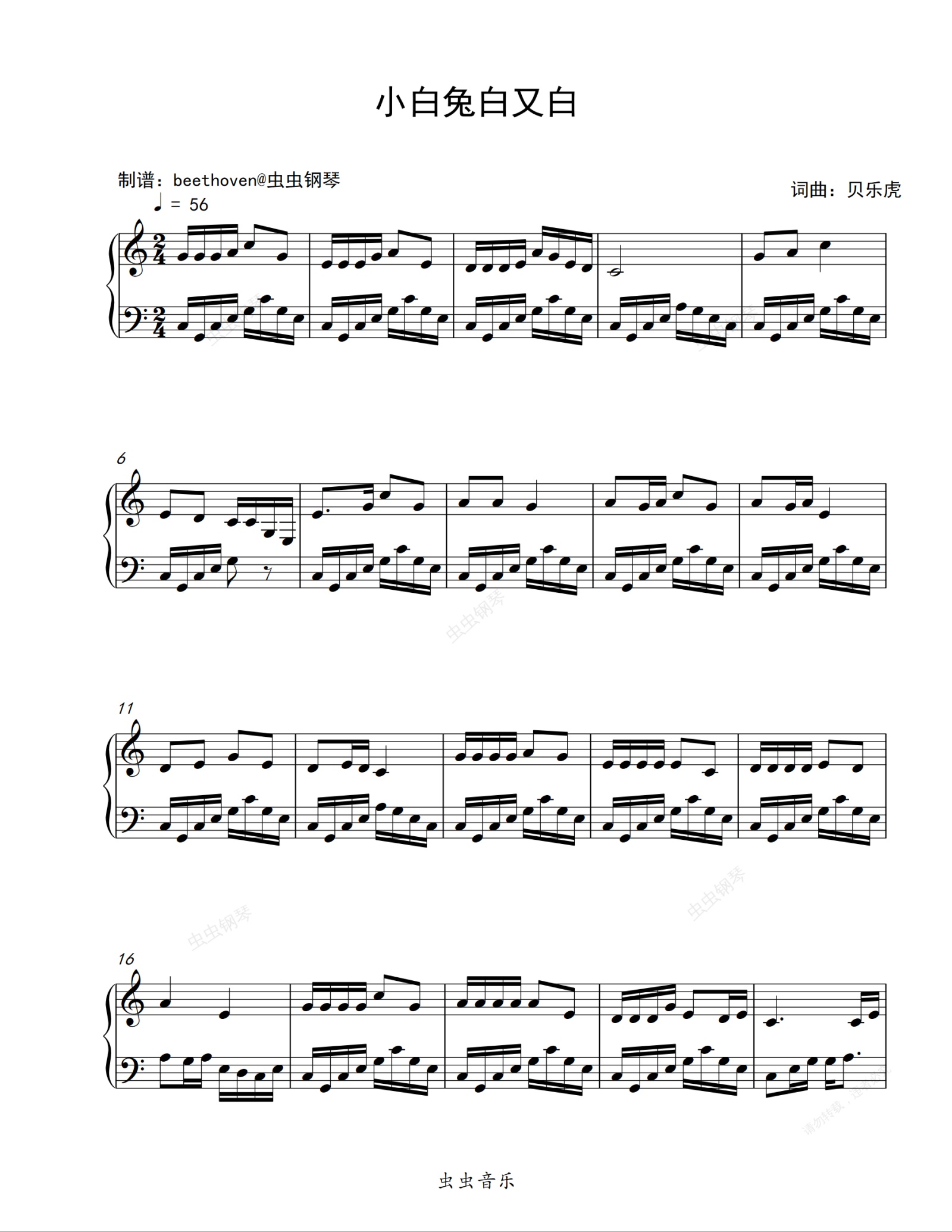 钢琴谱:小白兔白又白-贝乐虎儿歌