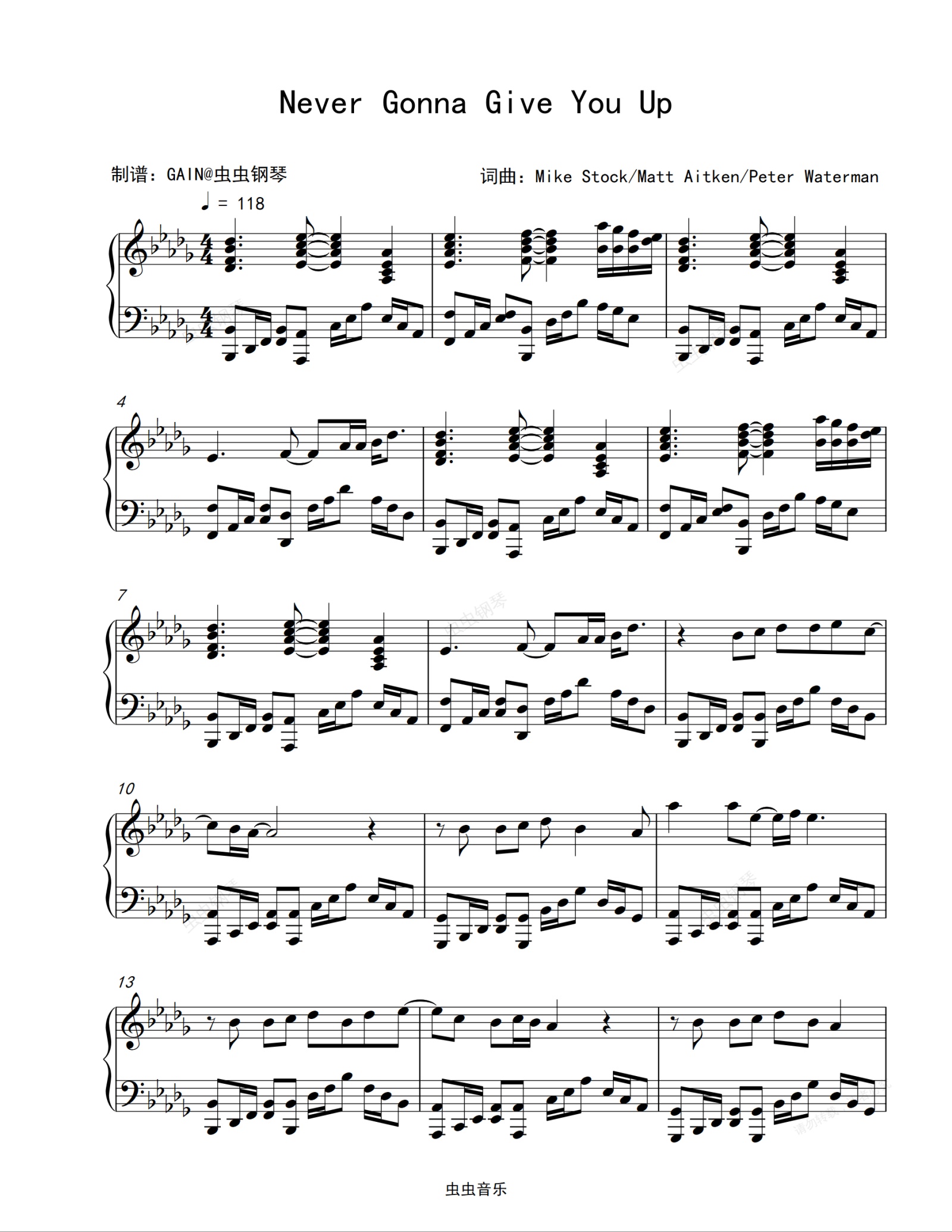 钢琴谱:Never Gonna Give You Up-永不放弃你-Rick Astley