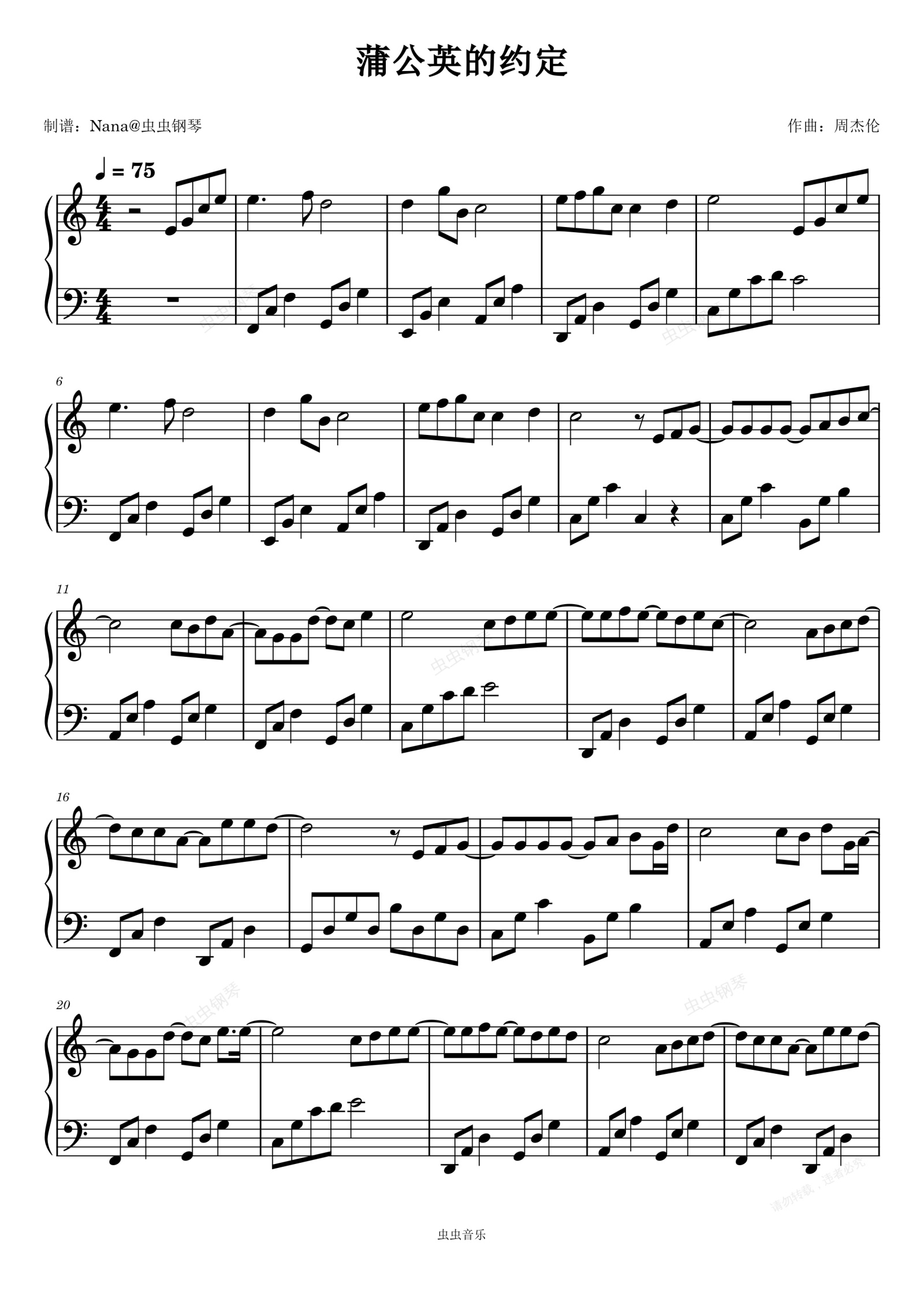 钢琴谱:《蒲公英的约定》C调-周杰伦