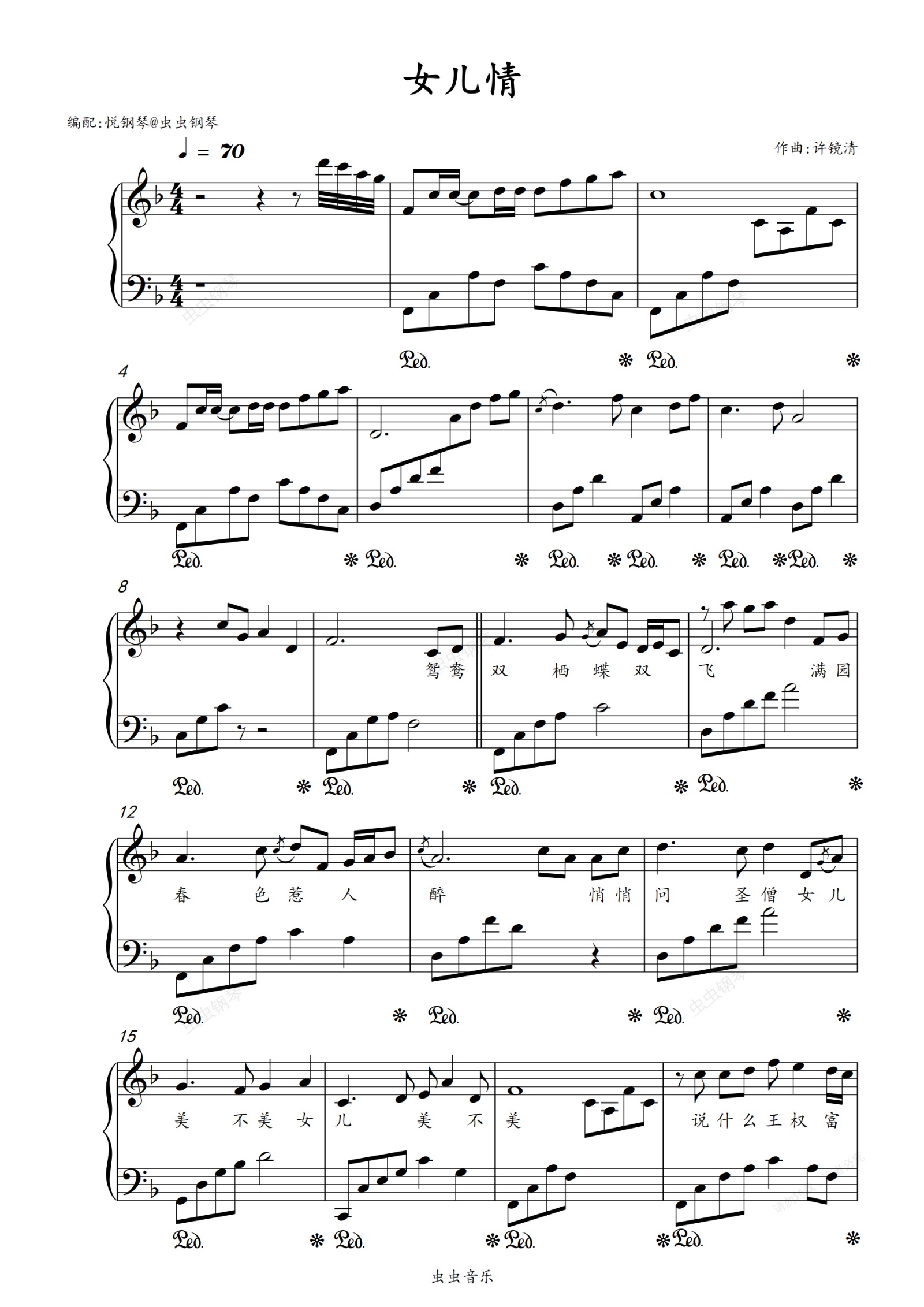 钢琴谱:女儿情 (原调版)86版西游记插曲