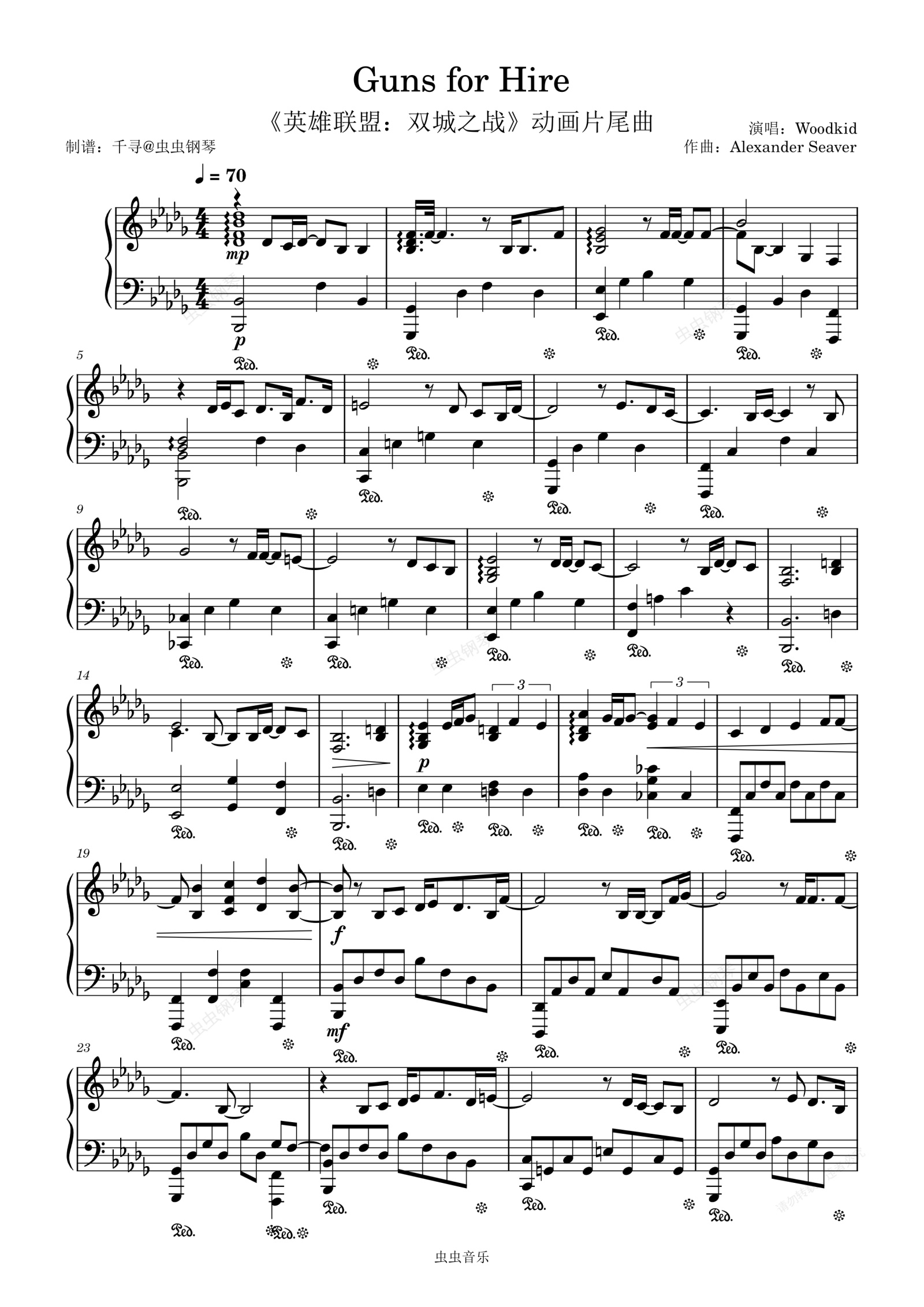 钢琴谱:Guns For Hire - Woodkid 《英雄联盟:双城之战》动画片尾曲