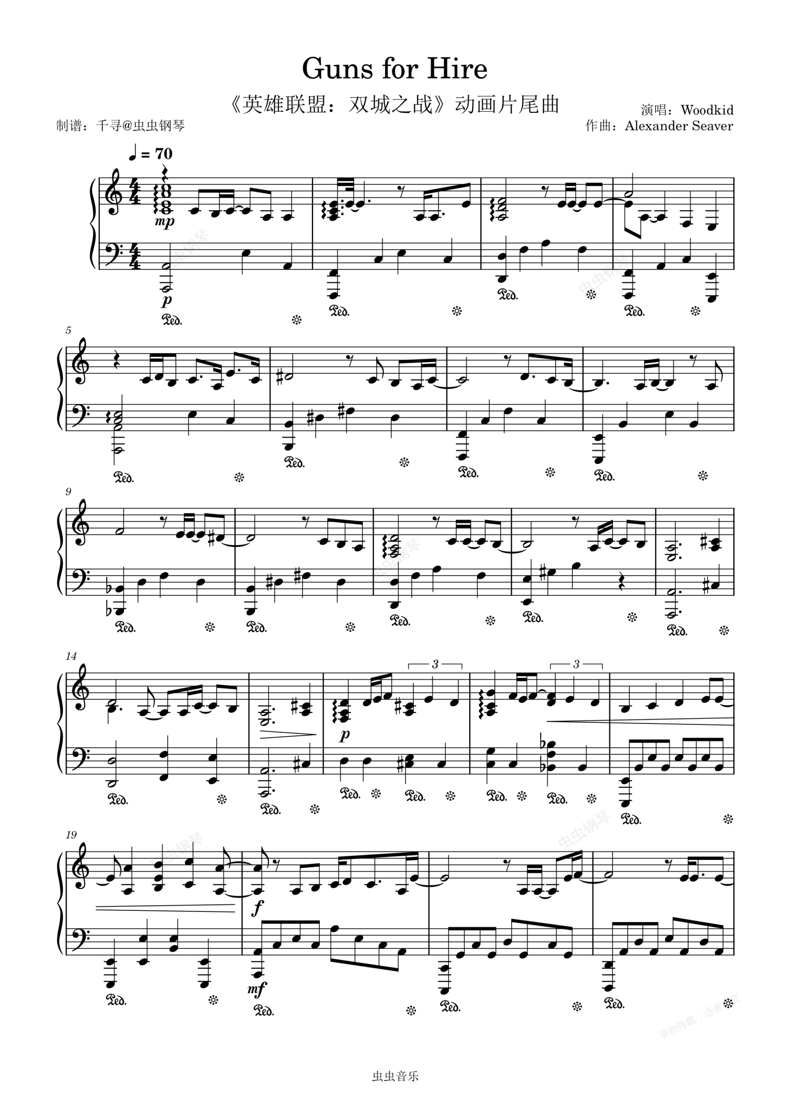 钢琴谱:Guns For Hire - Woodkid 《英雄联盟:双城之战》动画片尾曲