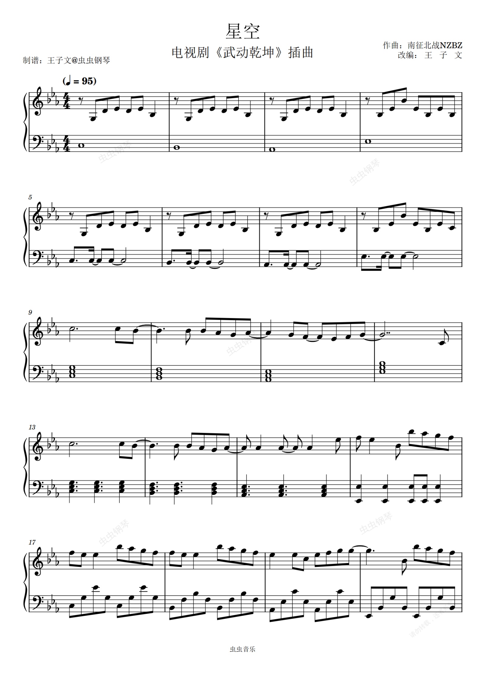 钢琴谱:星空-电视剧《武动乾坤》插曲