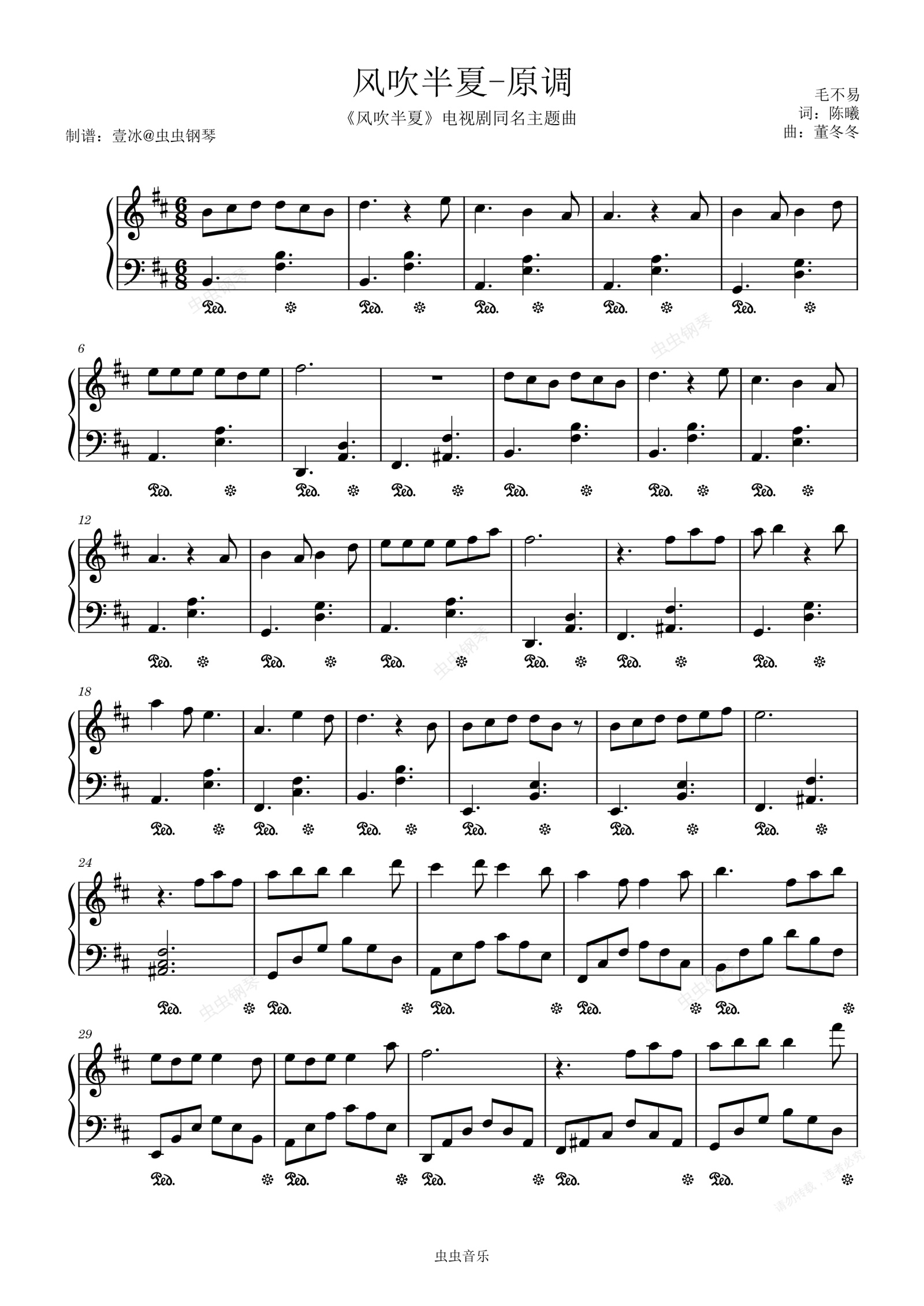 钢琴谱:风吹半夏//《风吹半夏》电视剧同名主题曲-原调