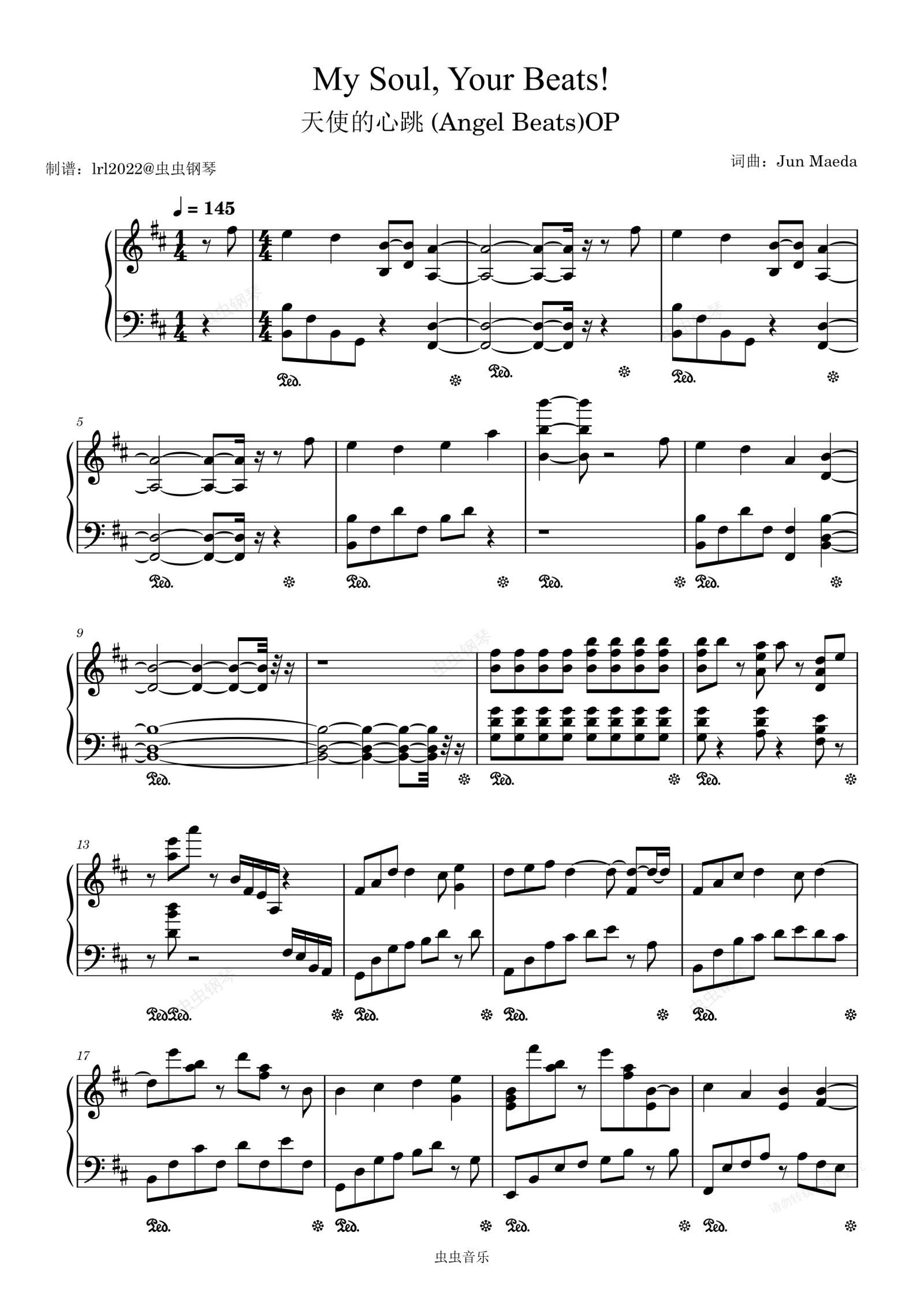 钢琴谱:天使的心跳 (Angel Beats) OP-My Soul, Your Beats!-原调独奏
