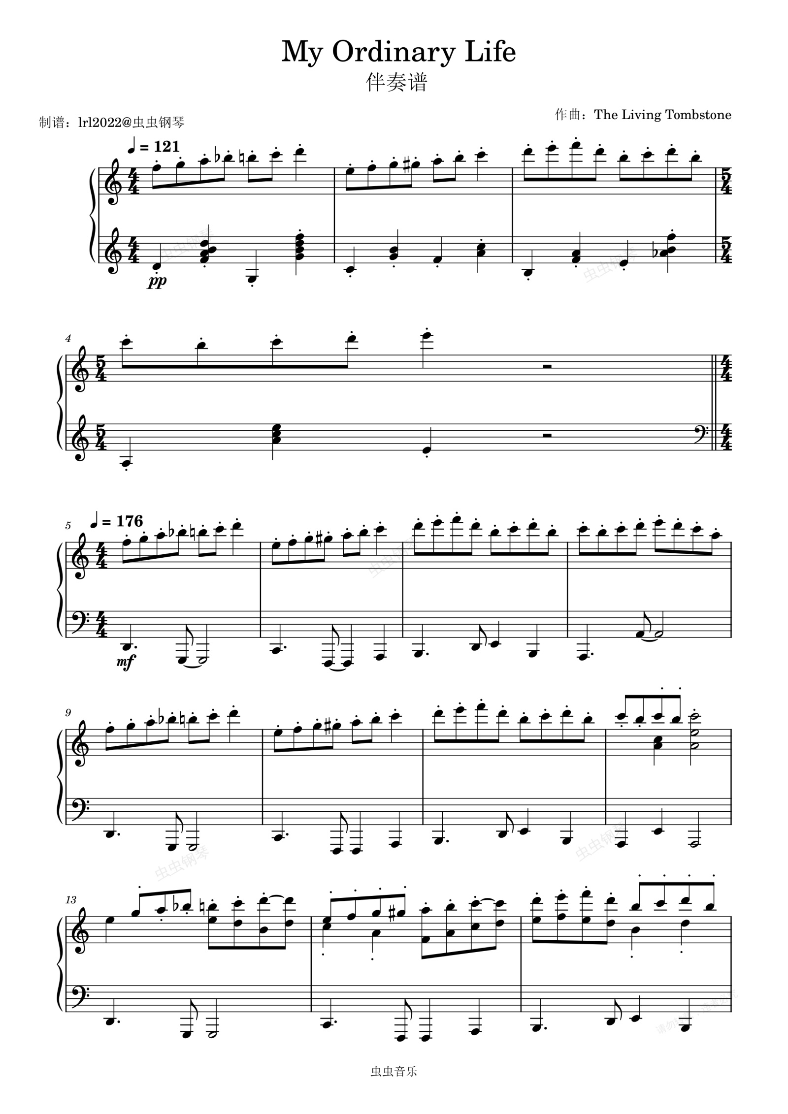 钢琴谱:My Ordinary Life-伴奏谱-The Living Tombstone