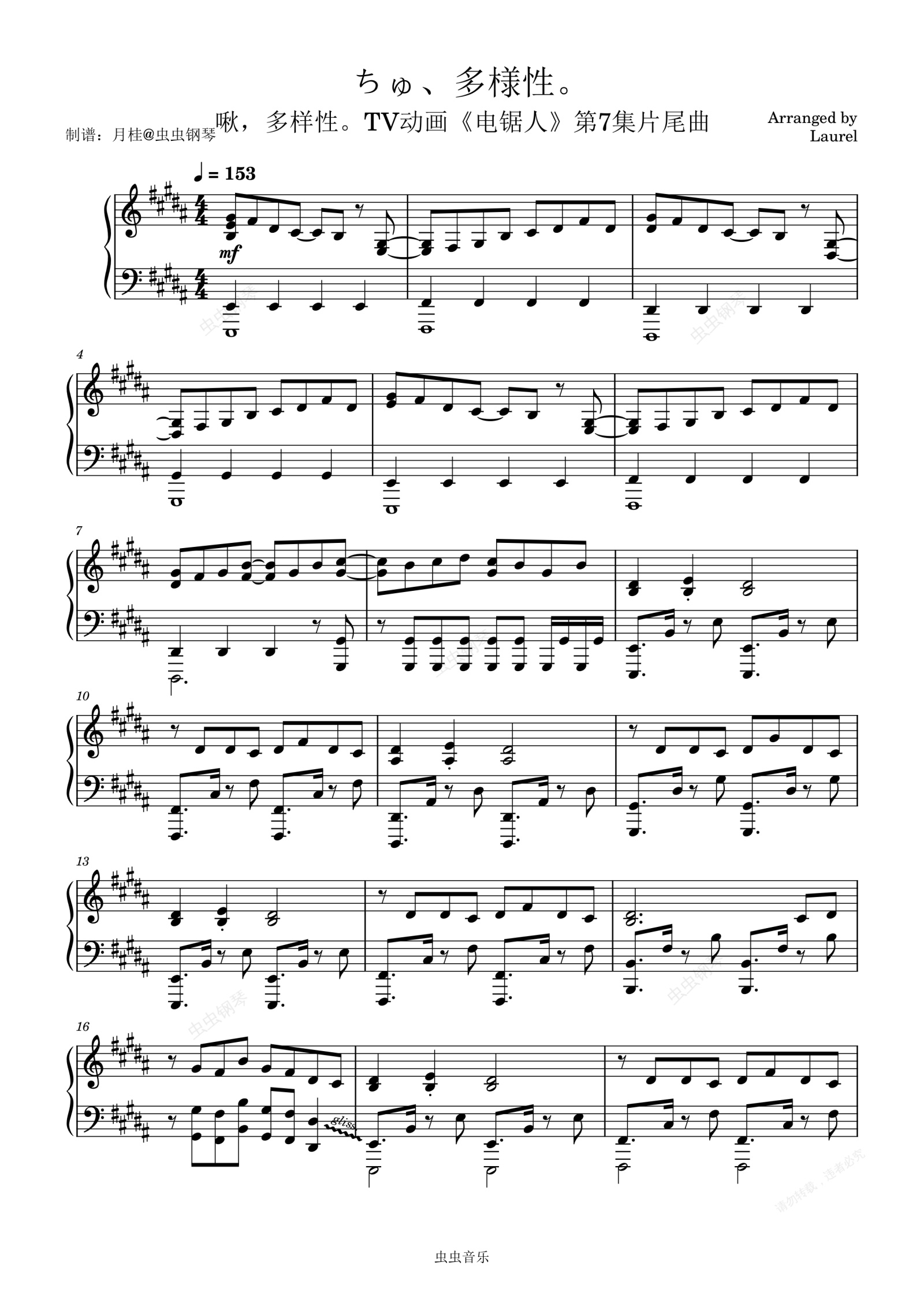 钢琴谱:啾,多样性。(ちゅ、多様性。)-电锯人第七集ED完整版