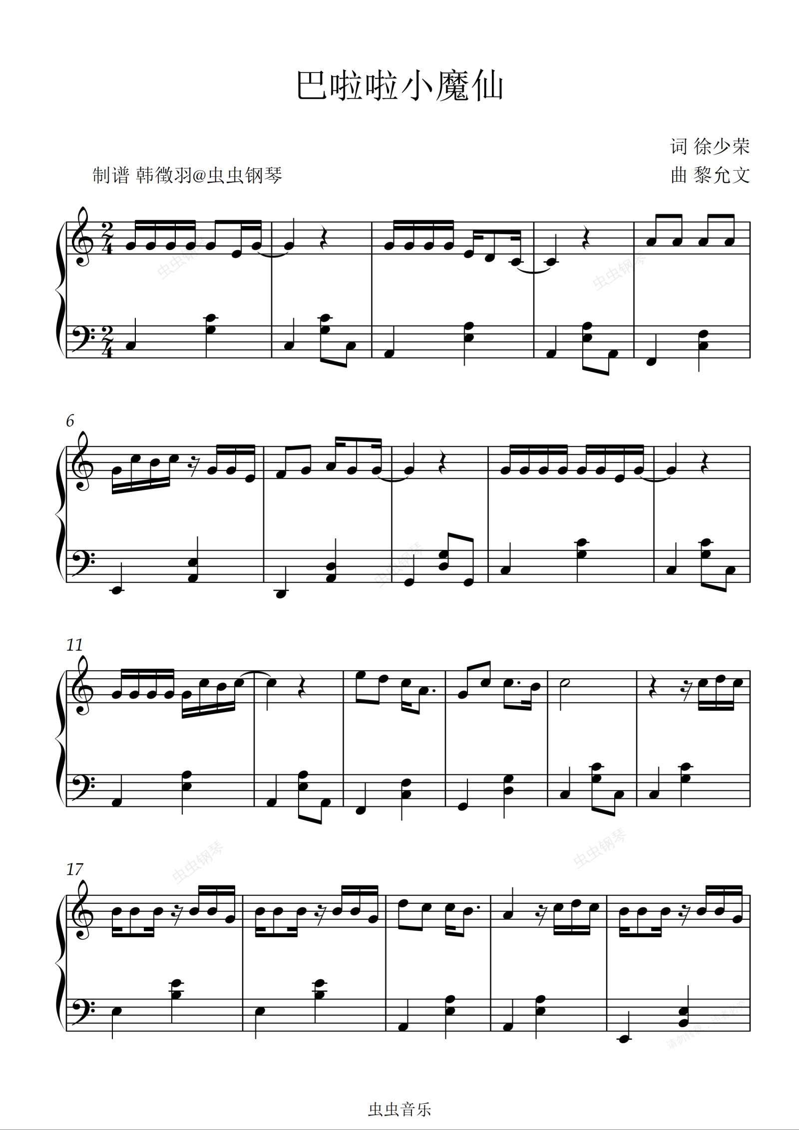 钢琴谱:巴啦啦小魔仙 C调简易版
