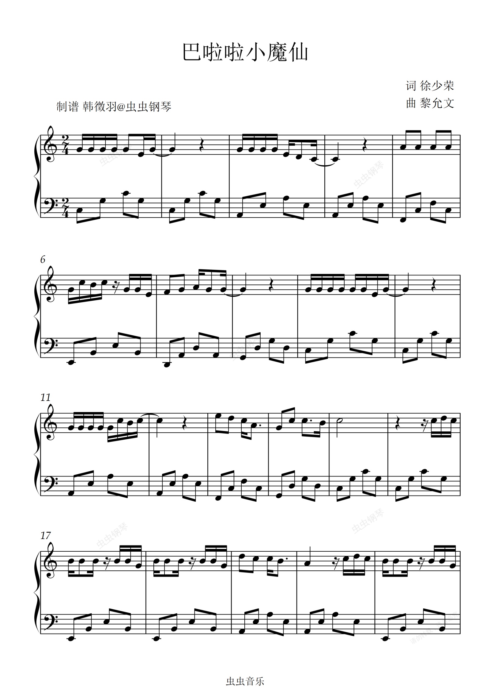 钢琴谱:巴啦啦小魔仙 C调简单易弹