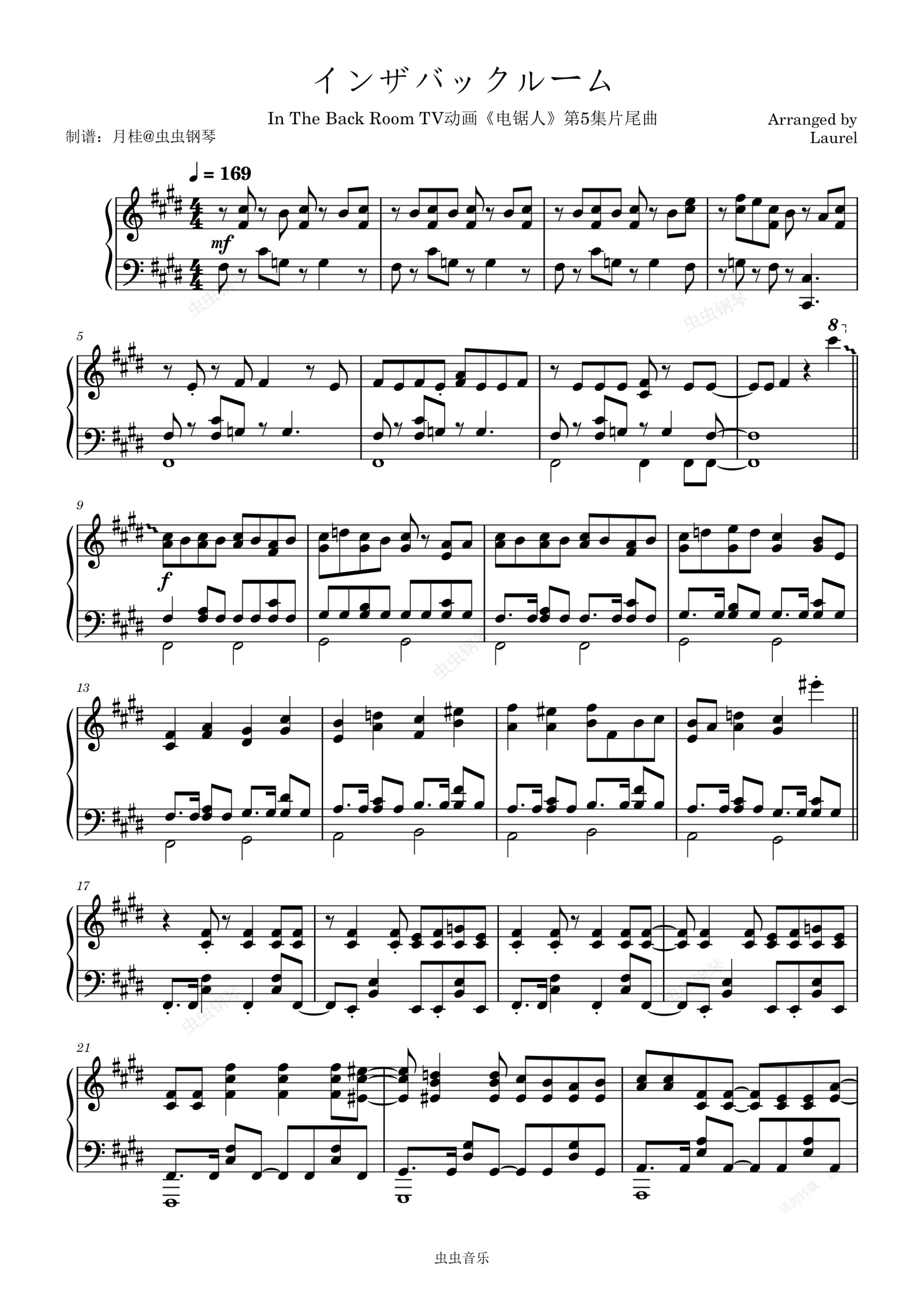 钢琴谱:インザバックルーム-电锯人第五集ED完整版