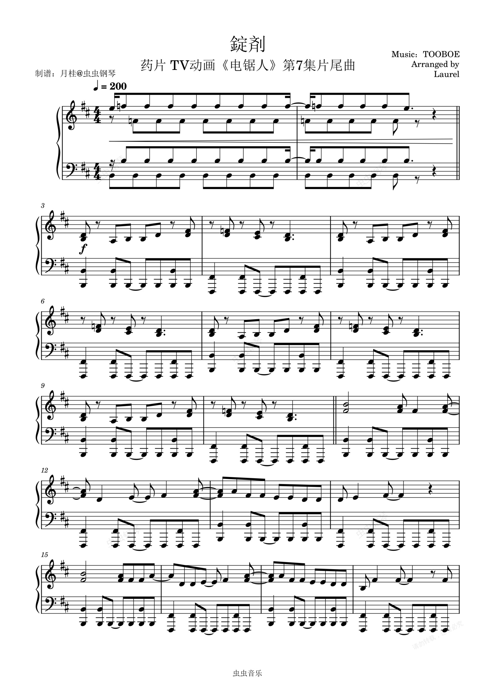 钢琴谱:药片(錠剤)-电锯人第四集ED完整版
