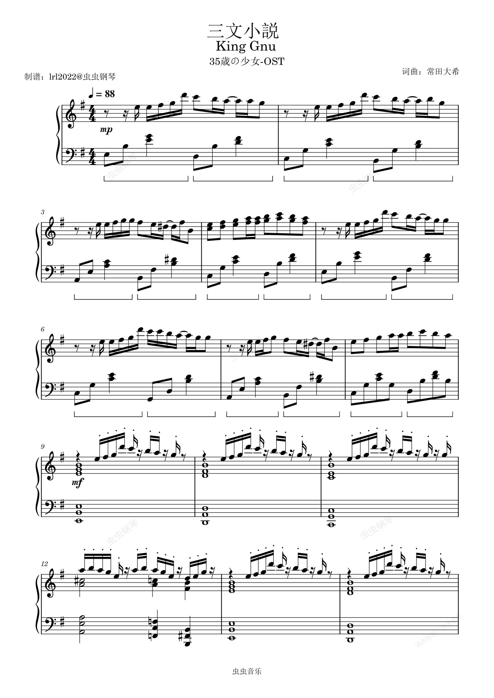 钢琴谱:三文小说-King Gnu-《35岁的少女》主题曲-独奏谱