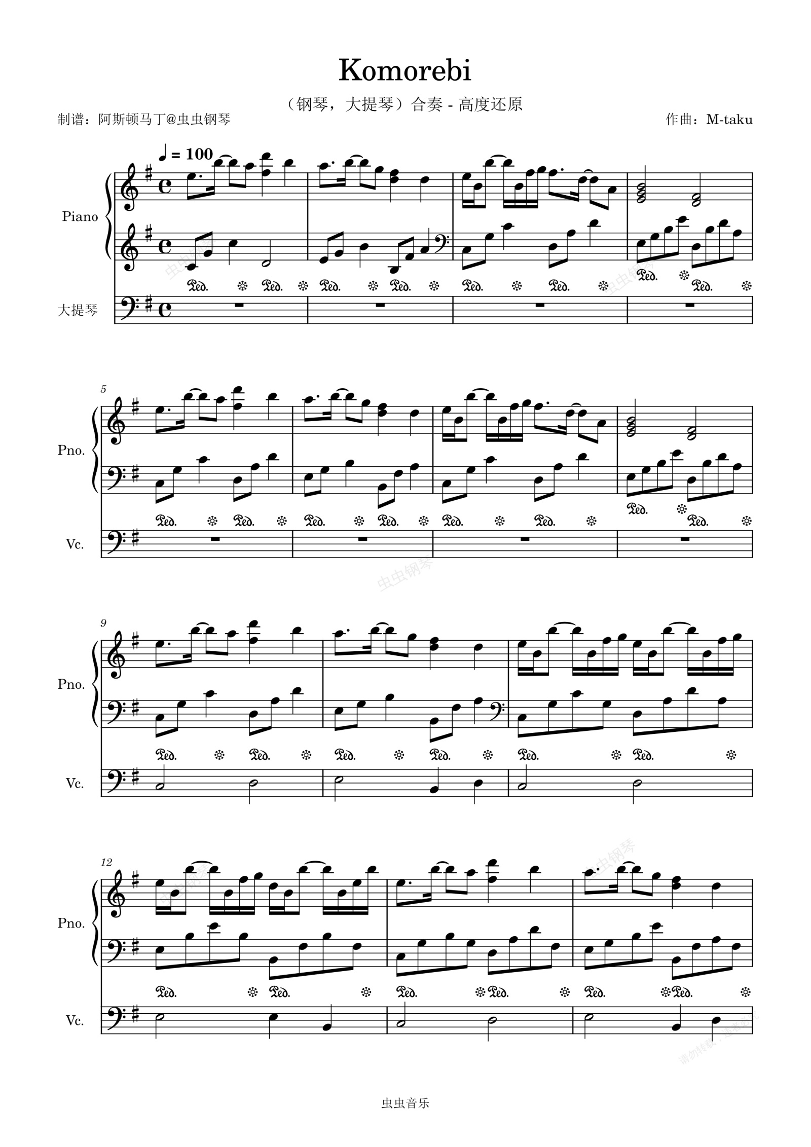 钢琴谱:《Komorebi》-高度还原(钢琴+小提琴)