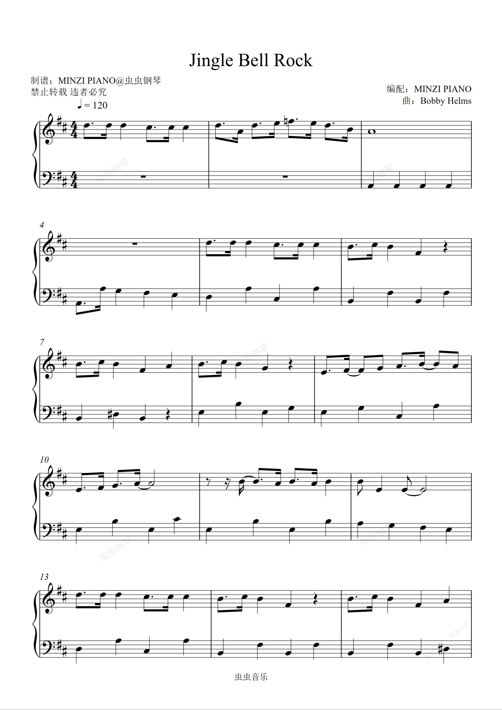 钢琴谱:Jingle Bell Rock -D调 好听易弹