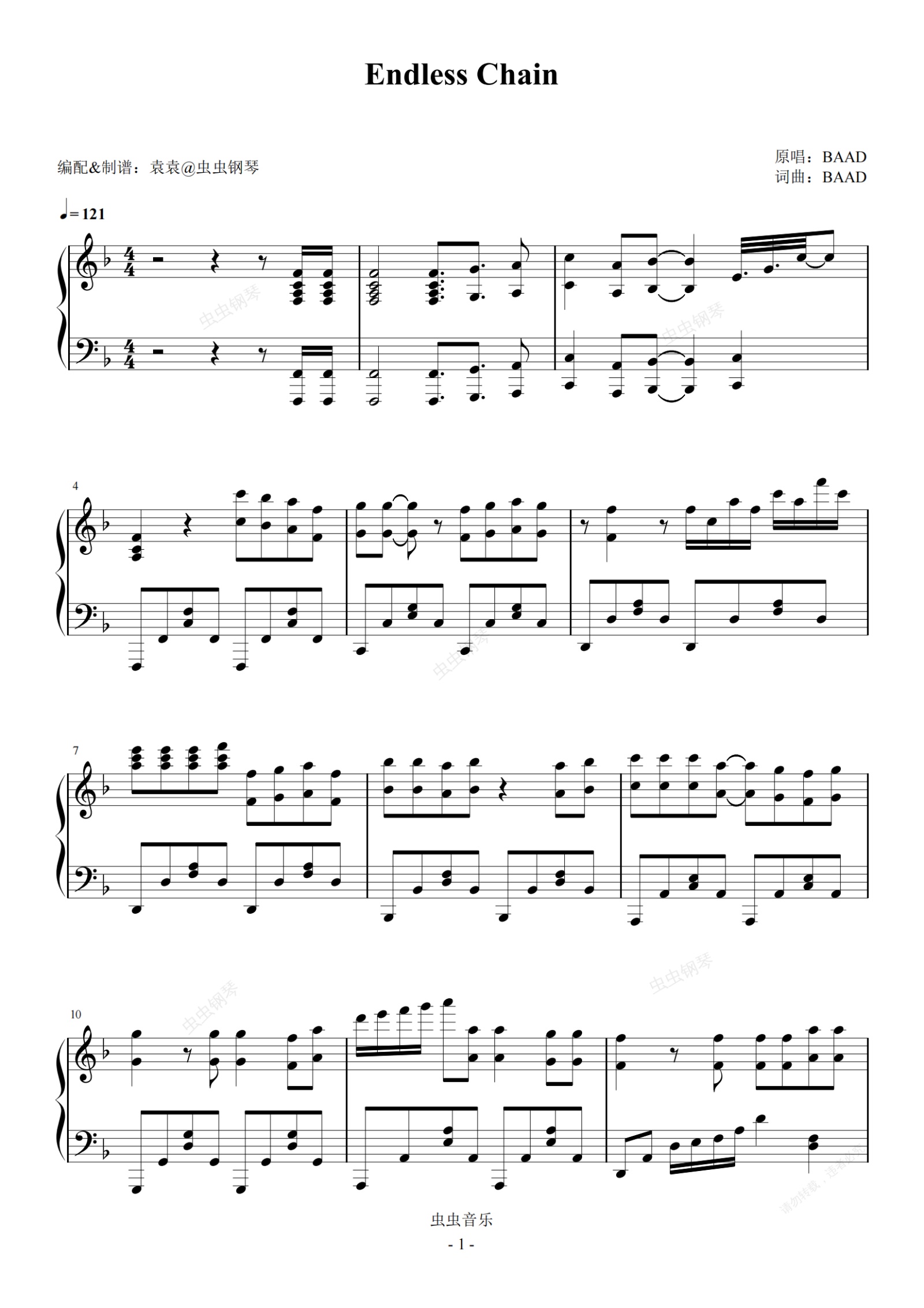 钢琴谱:灌篮高手插曲 Endless Chain 简易演奏版 原调