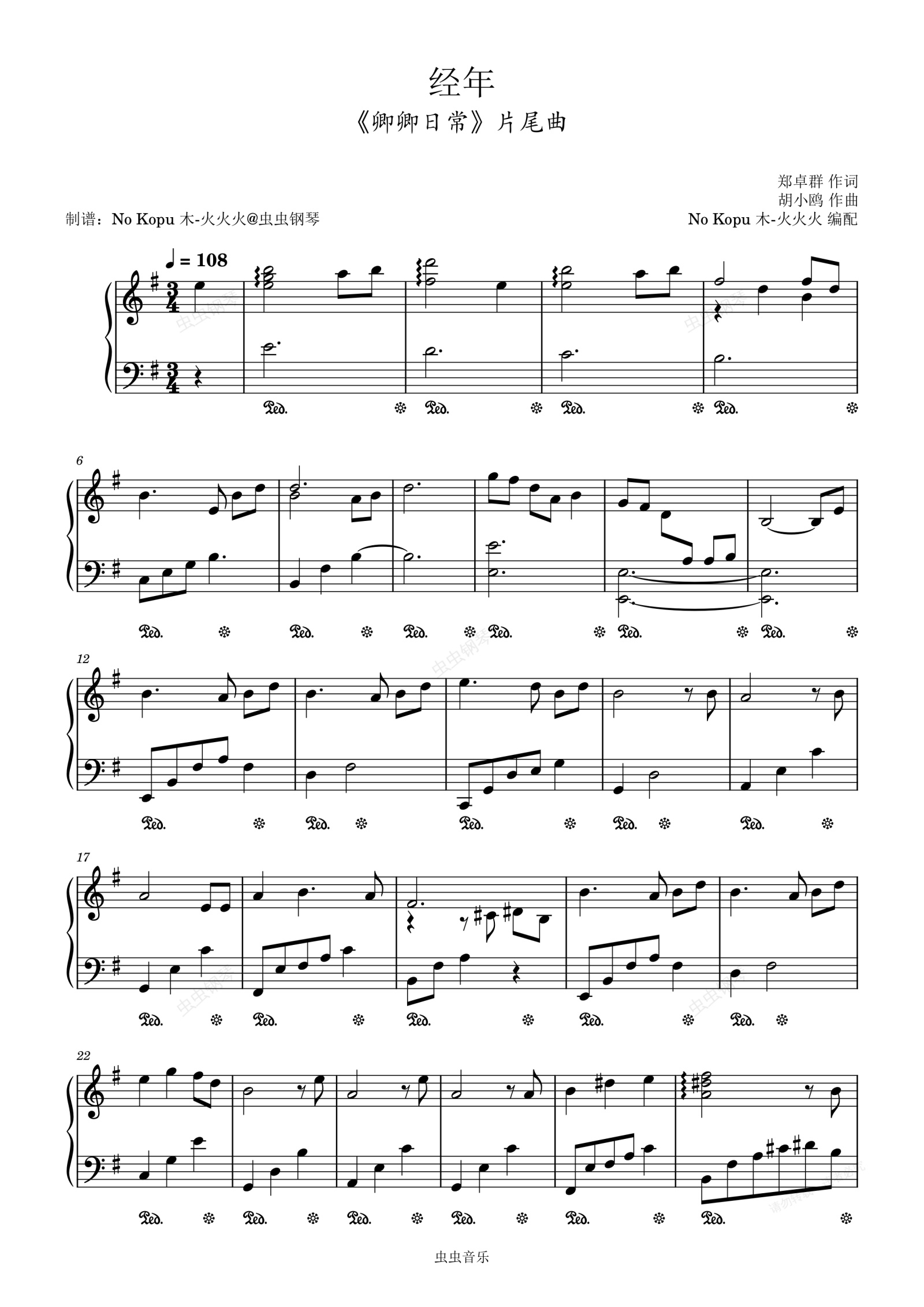 钢琴谱:精编扒谱《经年》(《卿卿日常》片尾)