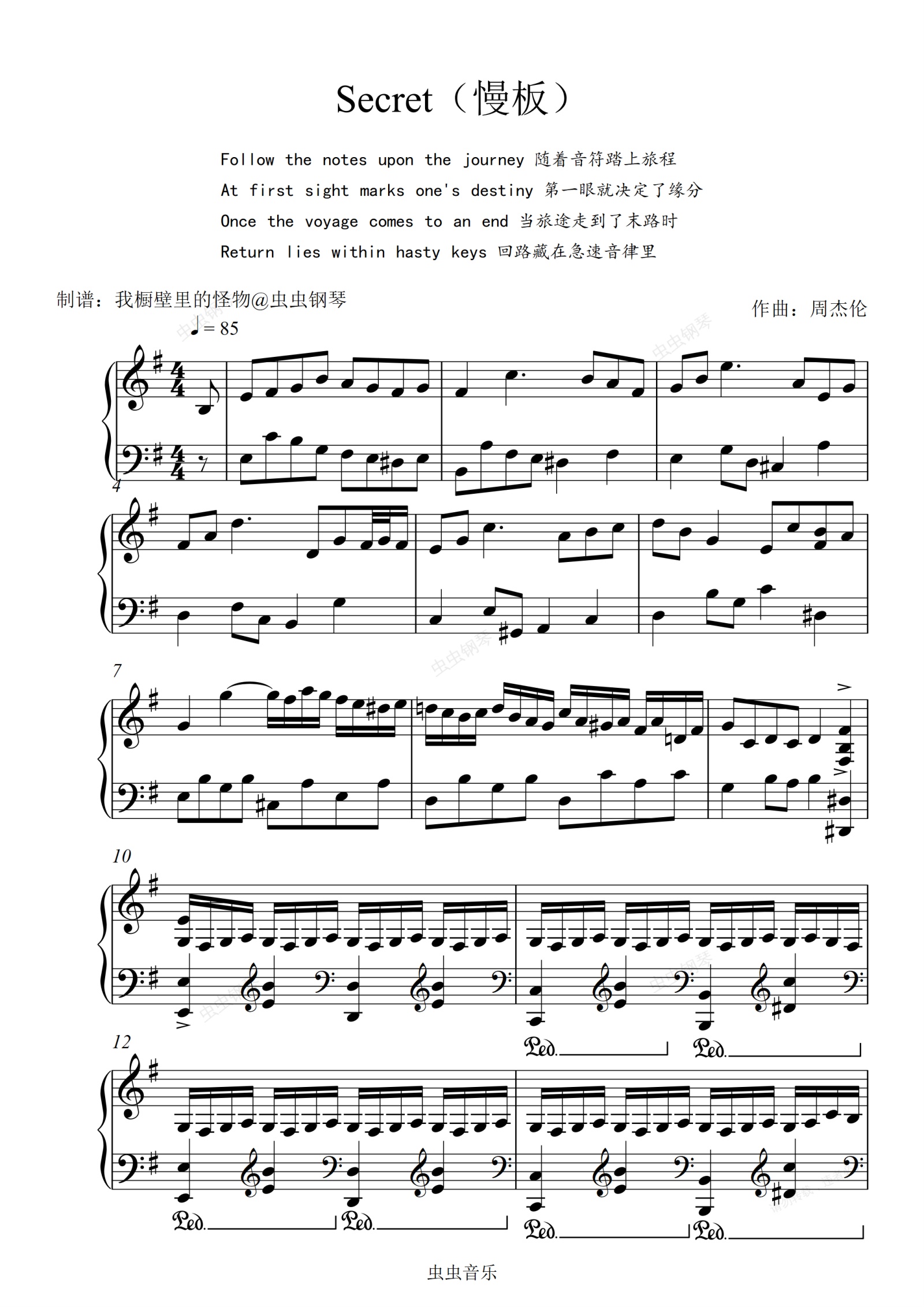 钢琴谱:【完美还原】Secret(慢版)《不能说的秘密》「怪物」