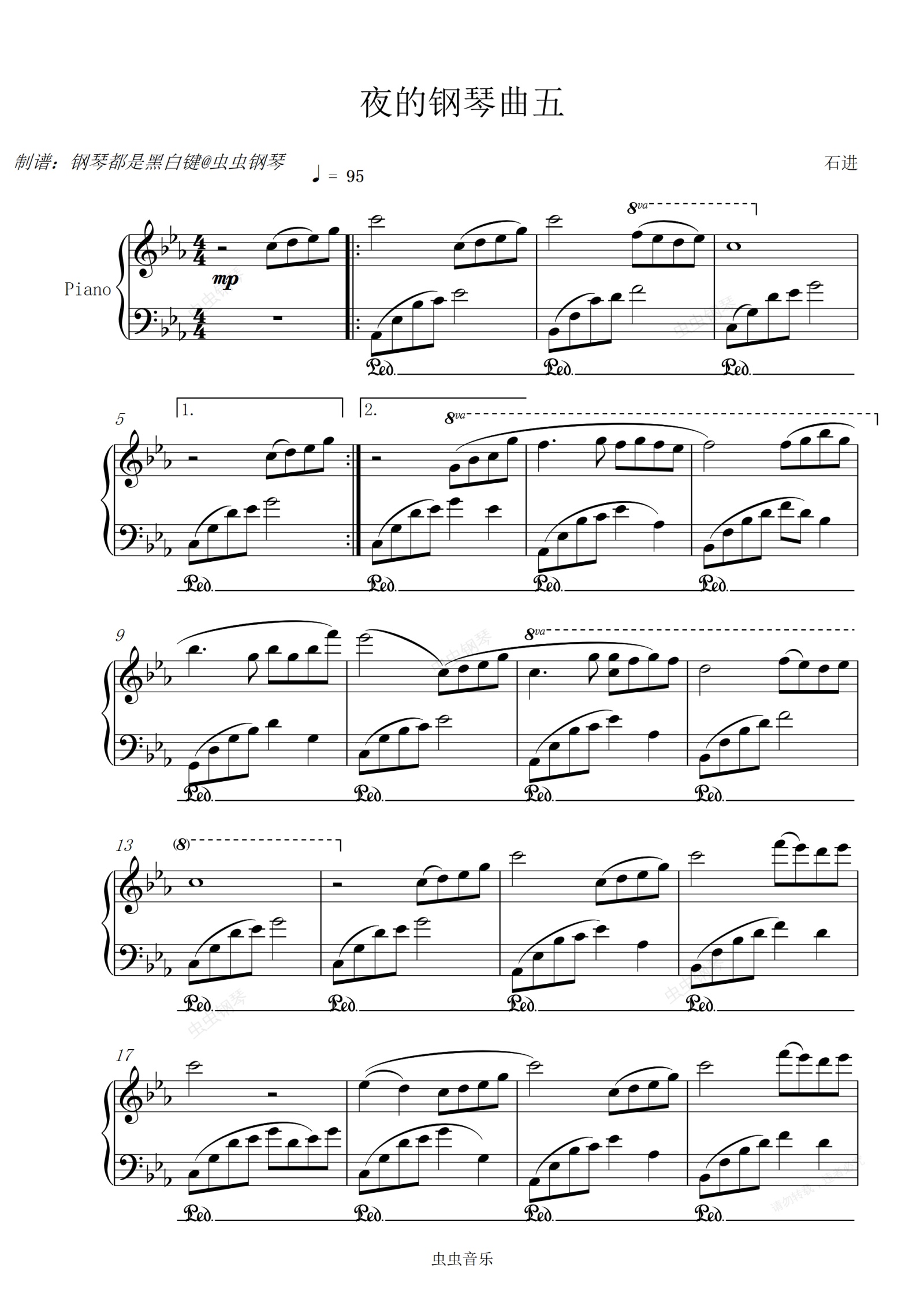 钢琴谱:钢琴 夜的钢琴曲(五)石进 Melody of the Night 5