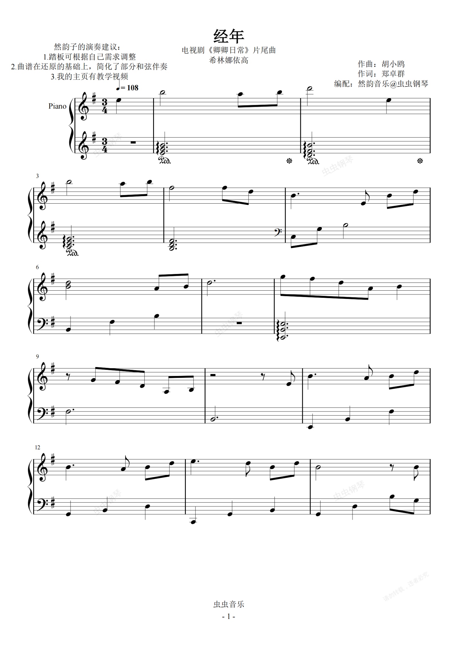 钢琴谱:【原调特惠】经年-《卿卿日常》片尾曲 简单易学版 希林娜依高