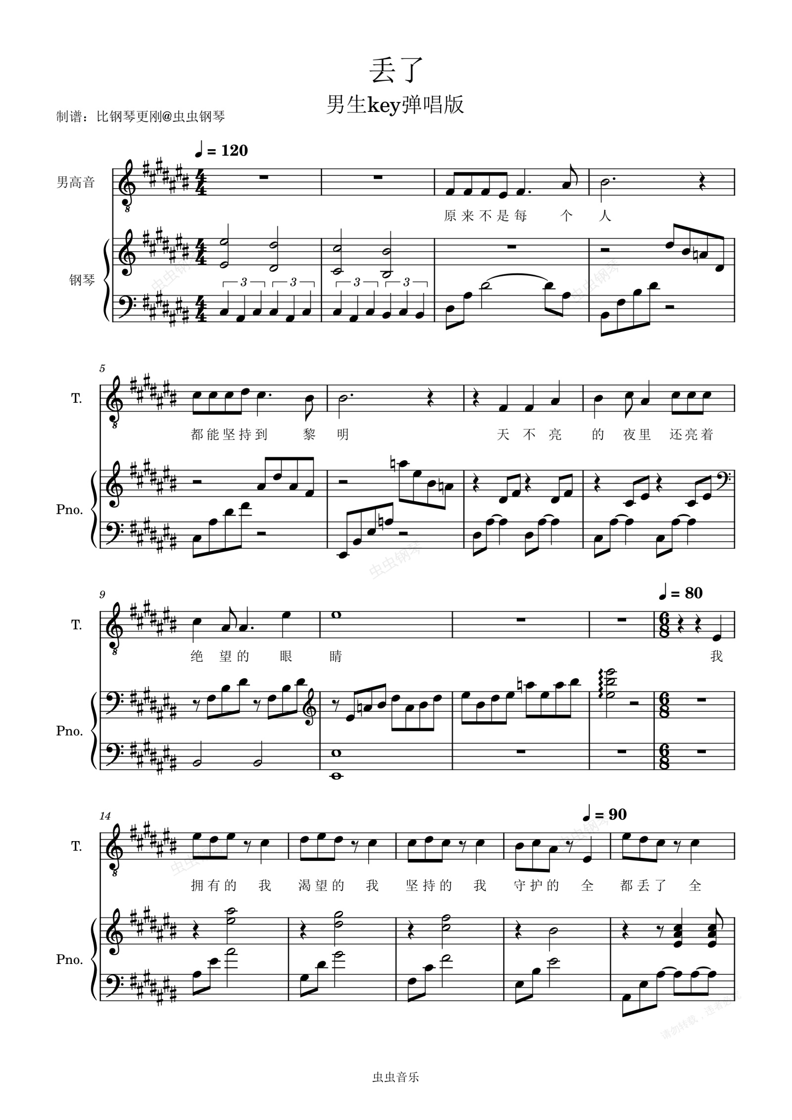 钢琴谱:丢了—音乐剧《沉默的真相》