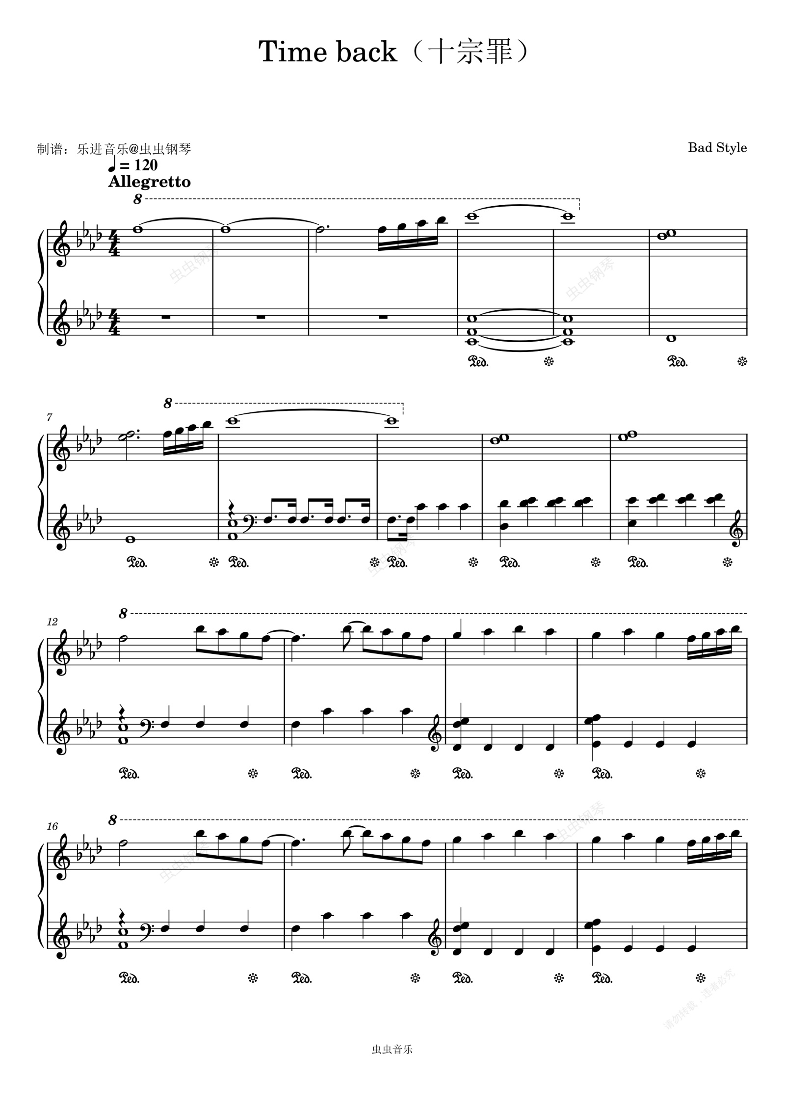 钢琴谱:《Time Back》 原调90%还原