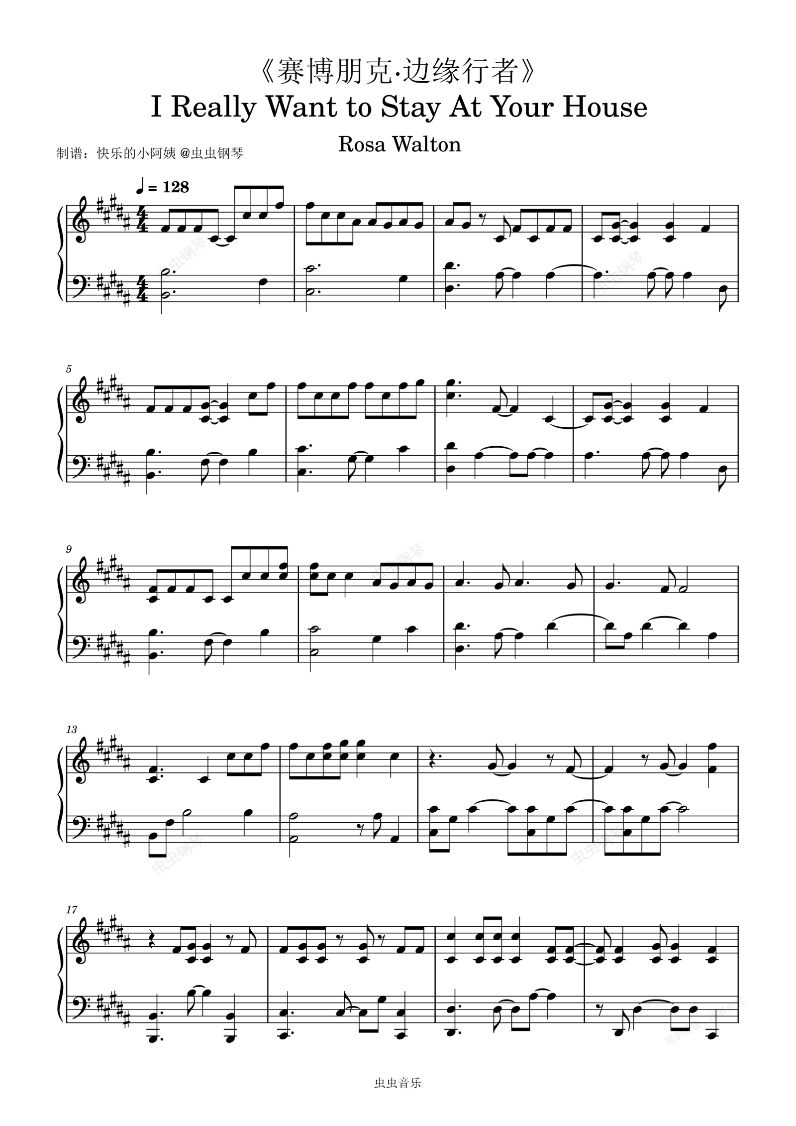 钢琴谱:《赛博朋克·边缘行者》- I Really Want to Stay At Your House