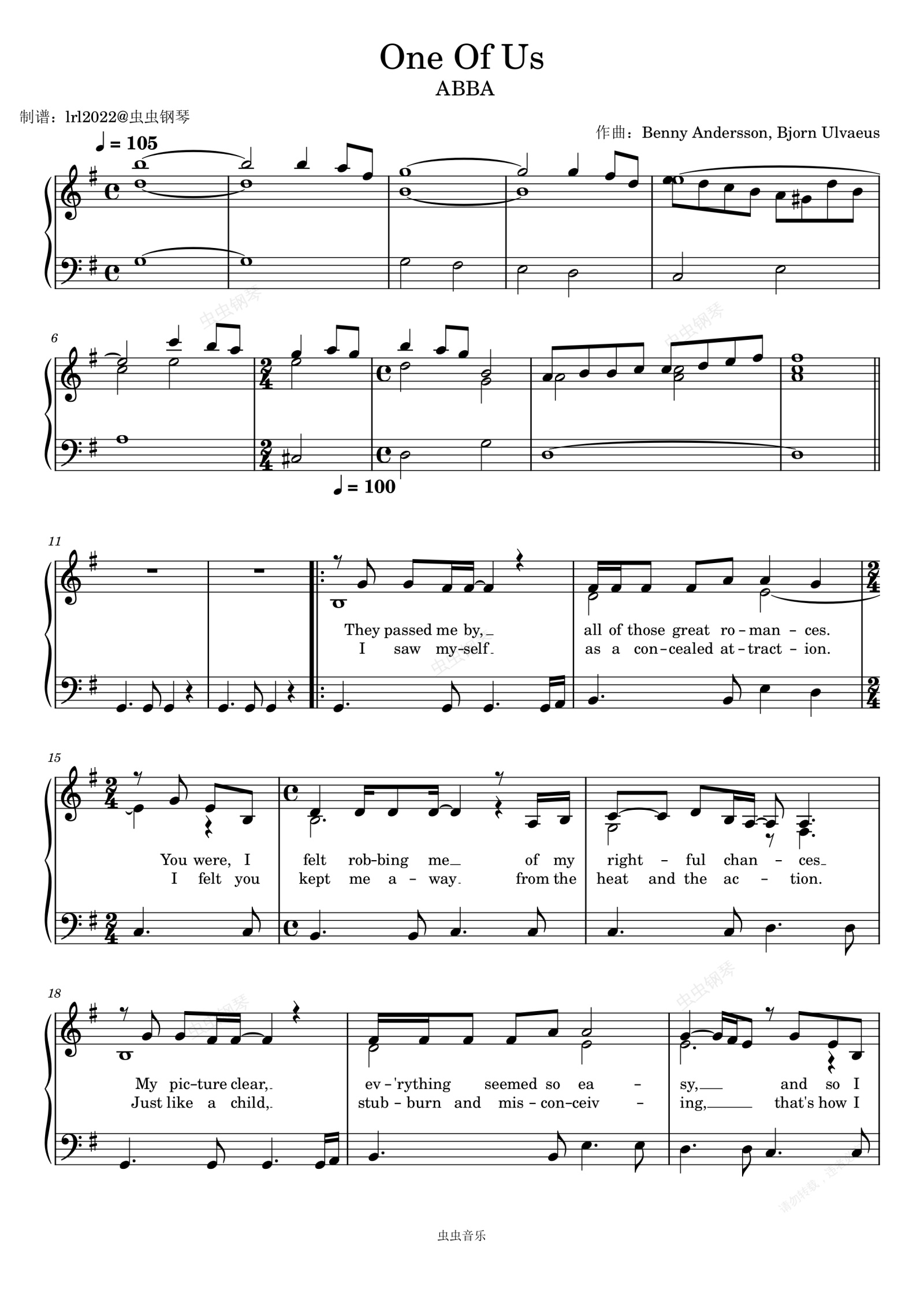 钢琴谱:One Of Us-独奏谱-带歌词-ABBA
