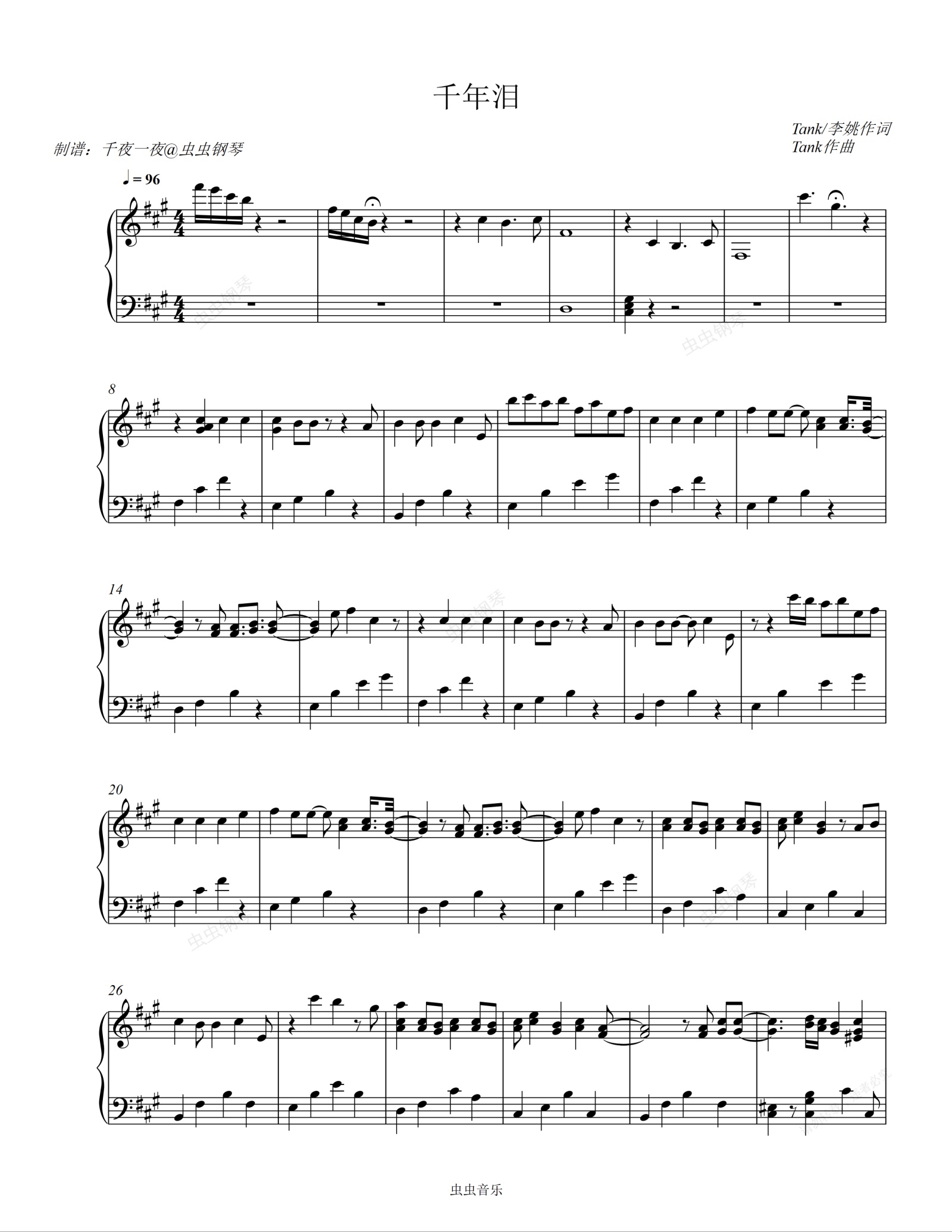 钢琴谱:一代人的记忆!《天外飞仙》片尾曲《千年泪》Tank,