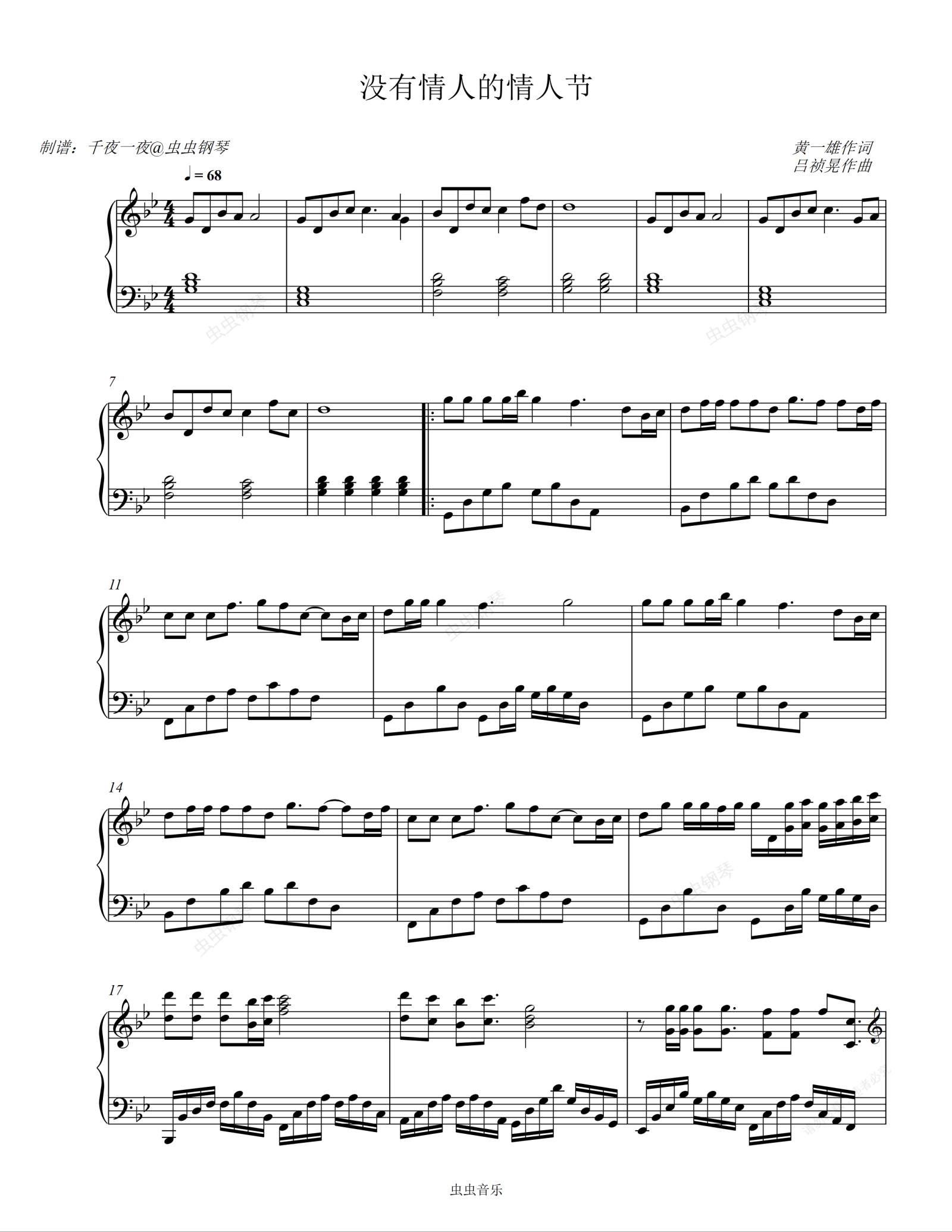 钢琴谱:《没有情人的情人节》祝天下有情人终成眷属