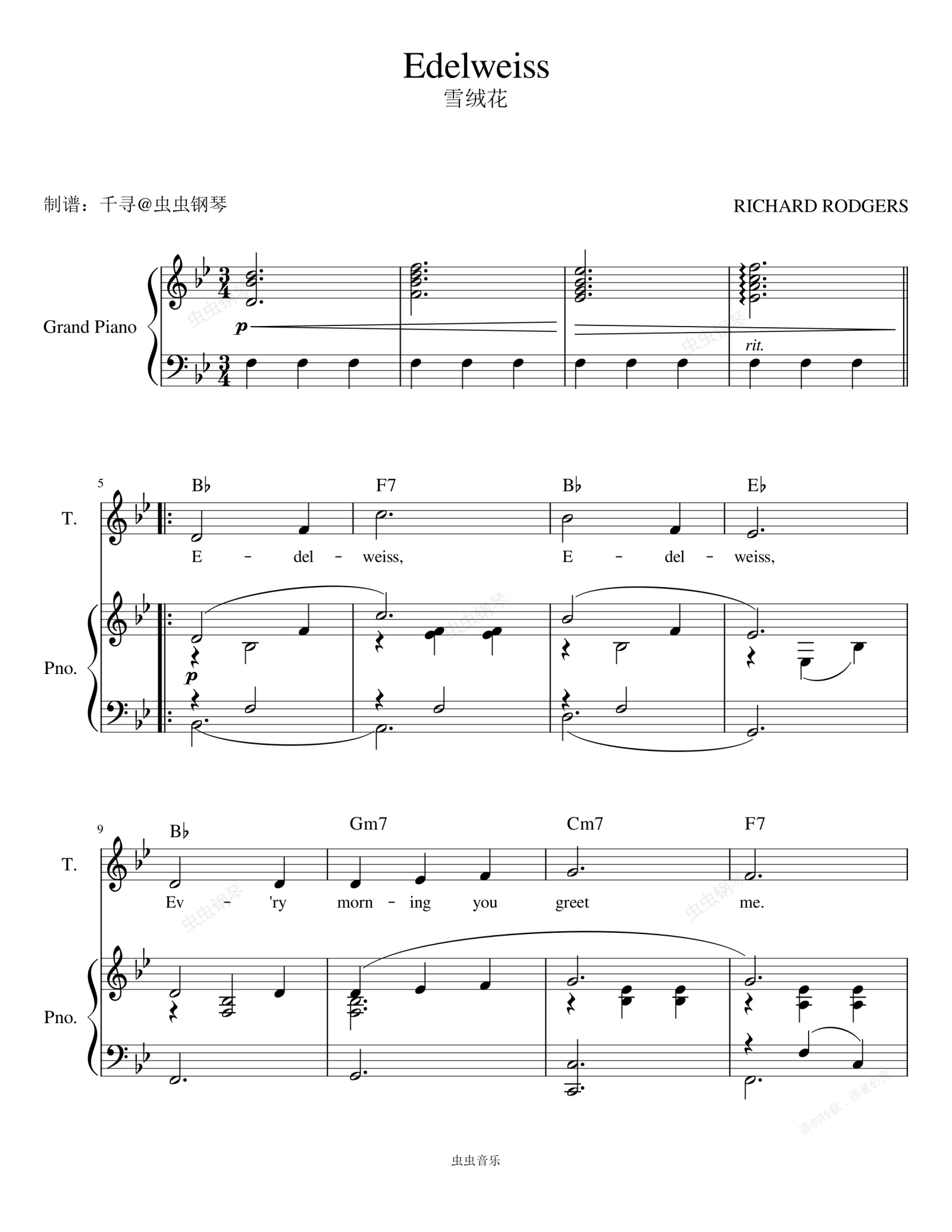 钢琴谱:雪绒花 Edelweiss - Stephen Moyer/Carrie Underwood (凯莉·安德伍德)/Ariane Rinehart/Michael Nigro