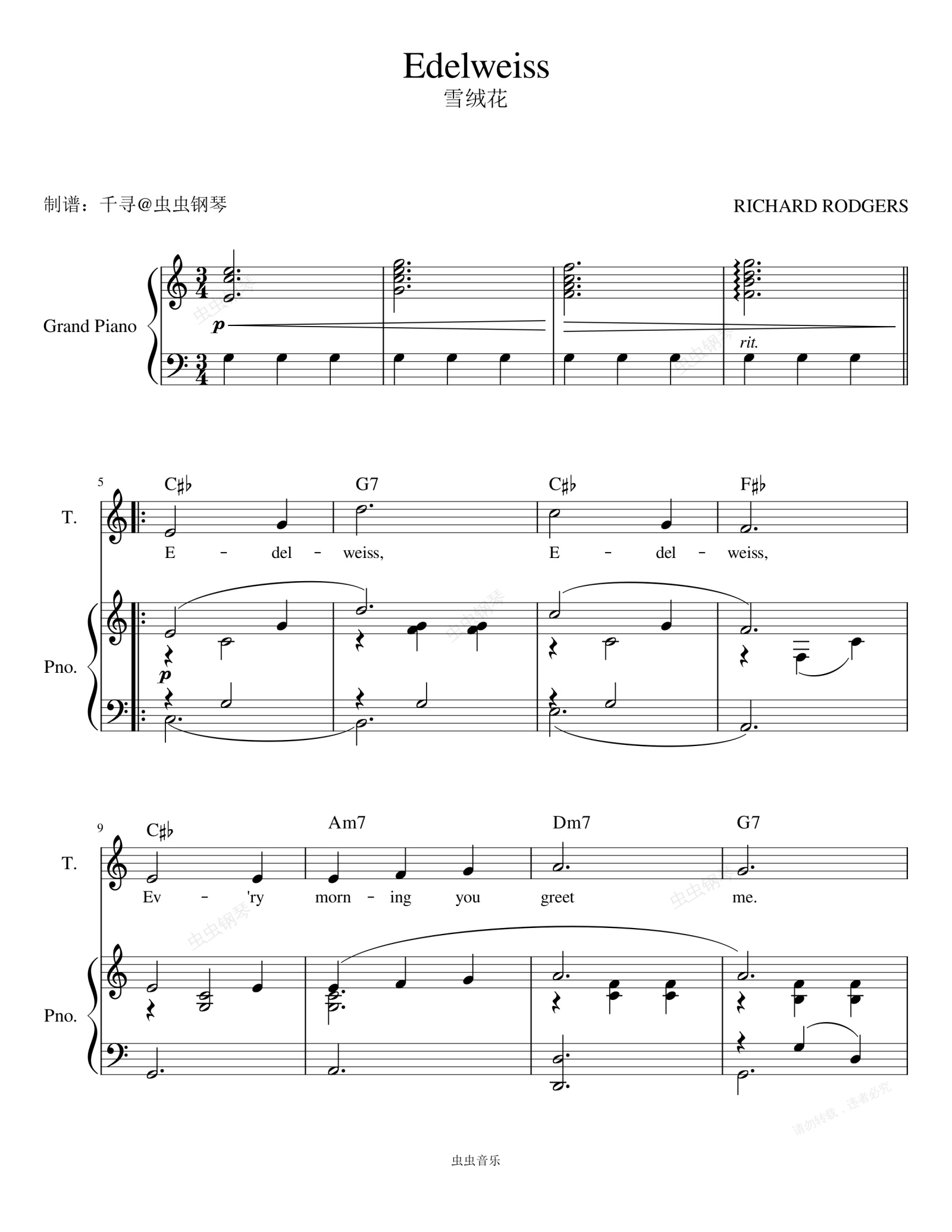 钢琴谱:雪绒花 Edelweiss - Stephen Moyer/Carrie Underwood (凯莉·安德伍德)/Ariane Rinehart/Michael Nigro