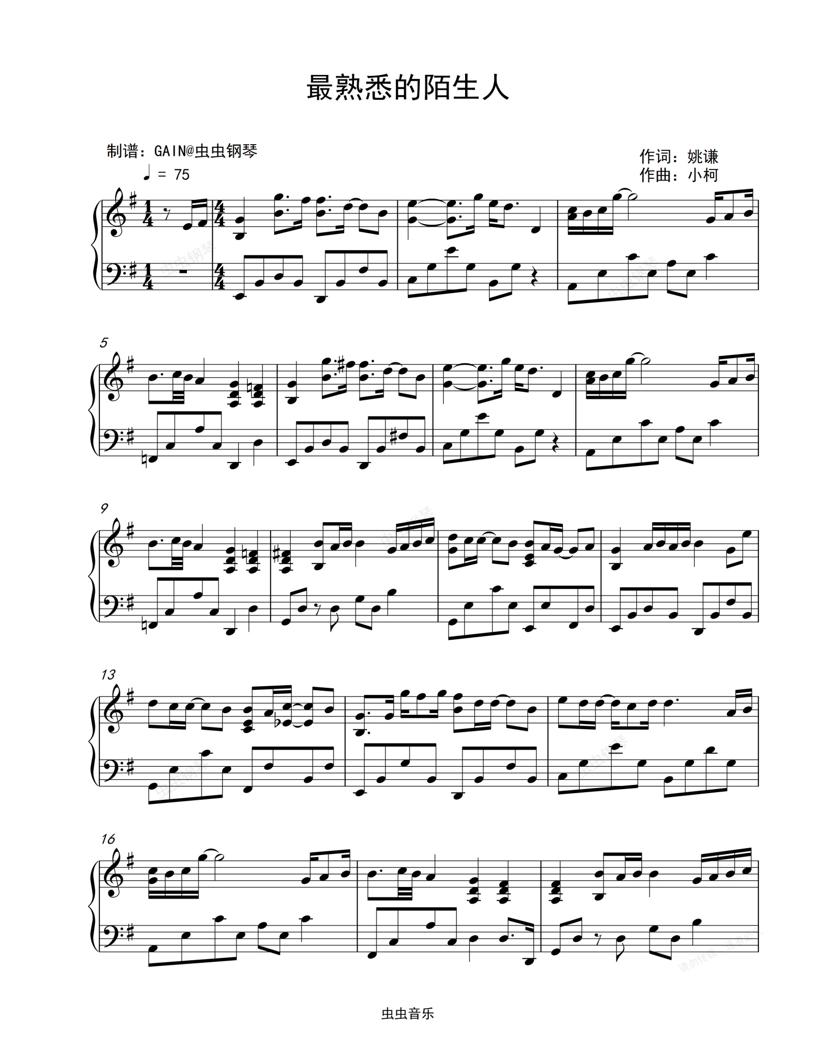 钢琴谱:最熟悉的陌生人-萧亚轩