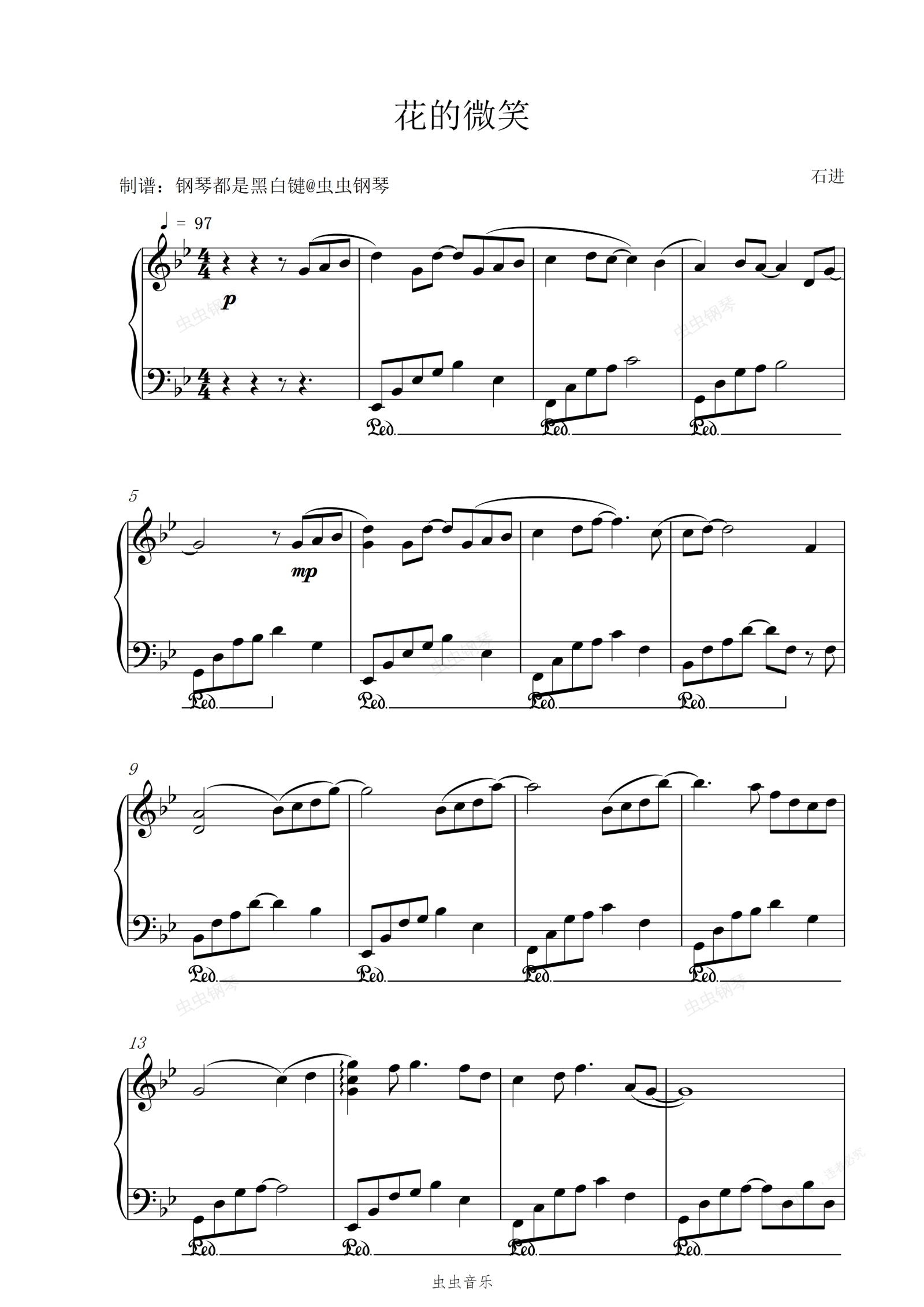 钢琴谱:花的微笑 - 石进 【钢琴轻音乐 | 舒缓音乐】