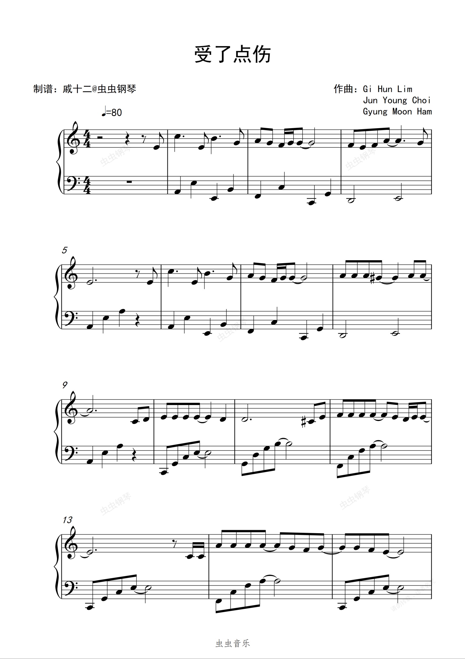 钢琴谱:受了点伤-C调简单版