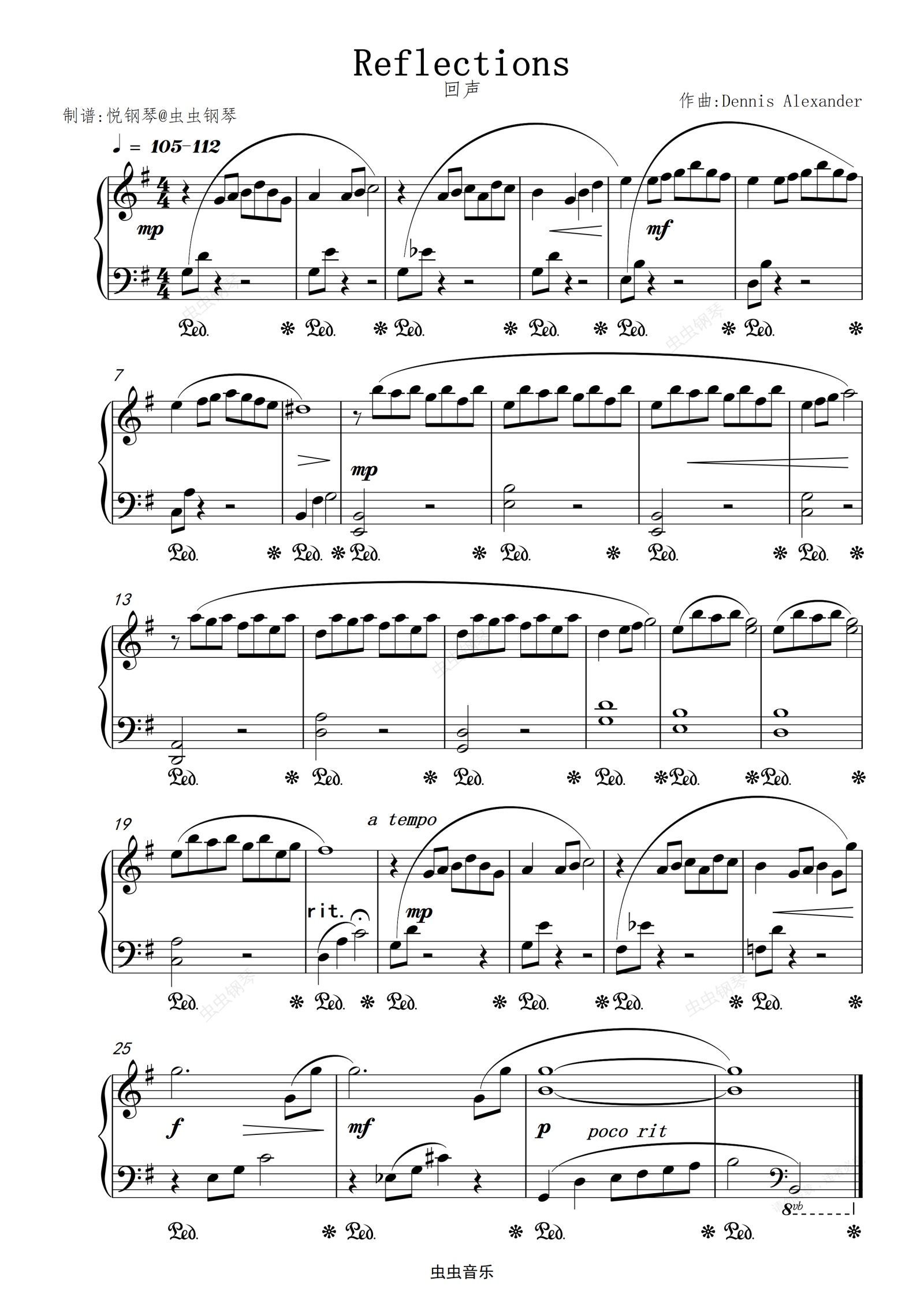 钢琴谱:Reflections / 回声【治愈钢琴小曲】