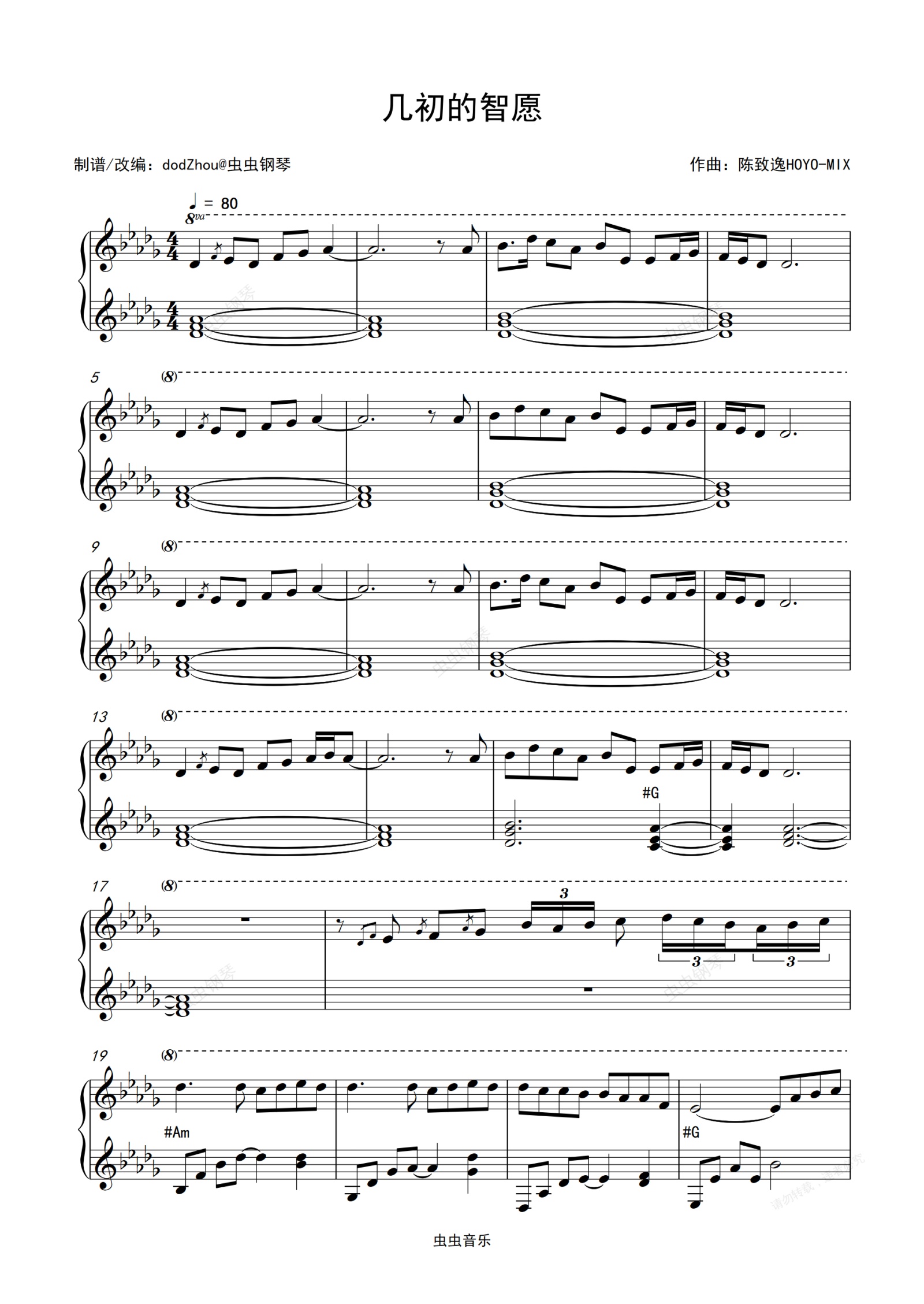 钢琴谱:几初的智愿-折枝落梦pv 初学者极简版