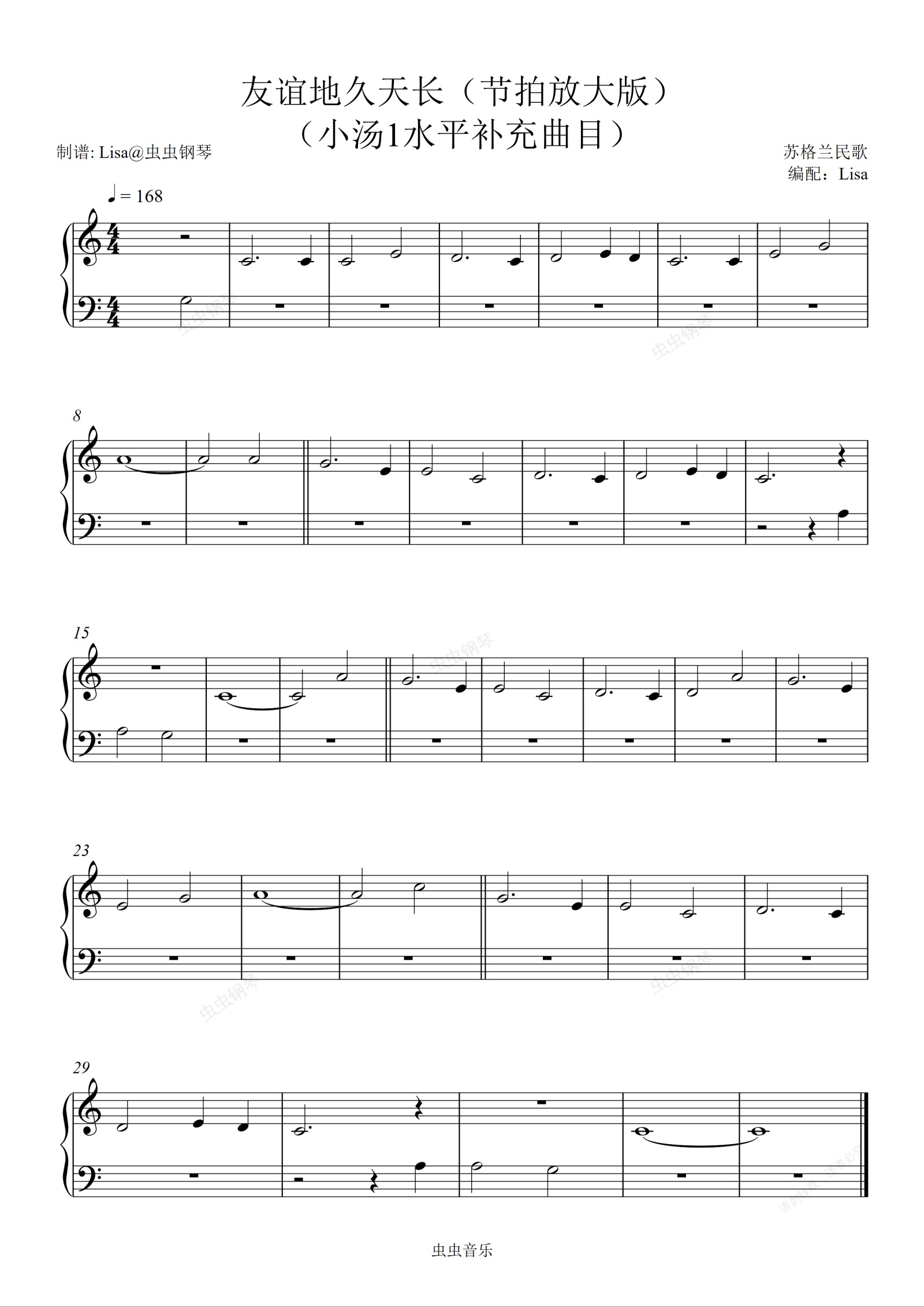 钢琴谱:友谊地久天长(小汤1水平)