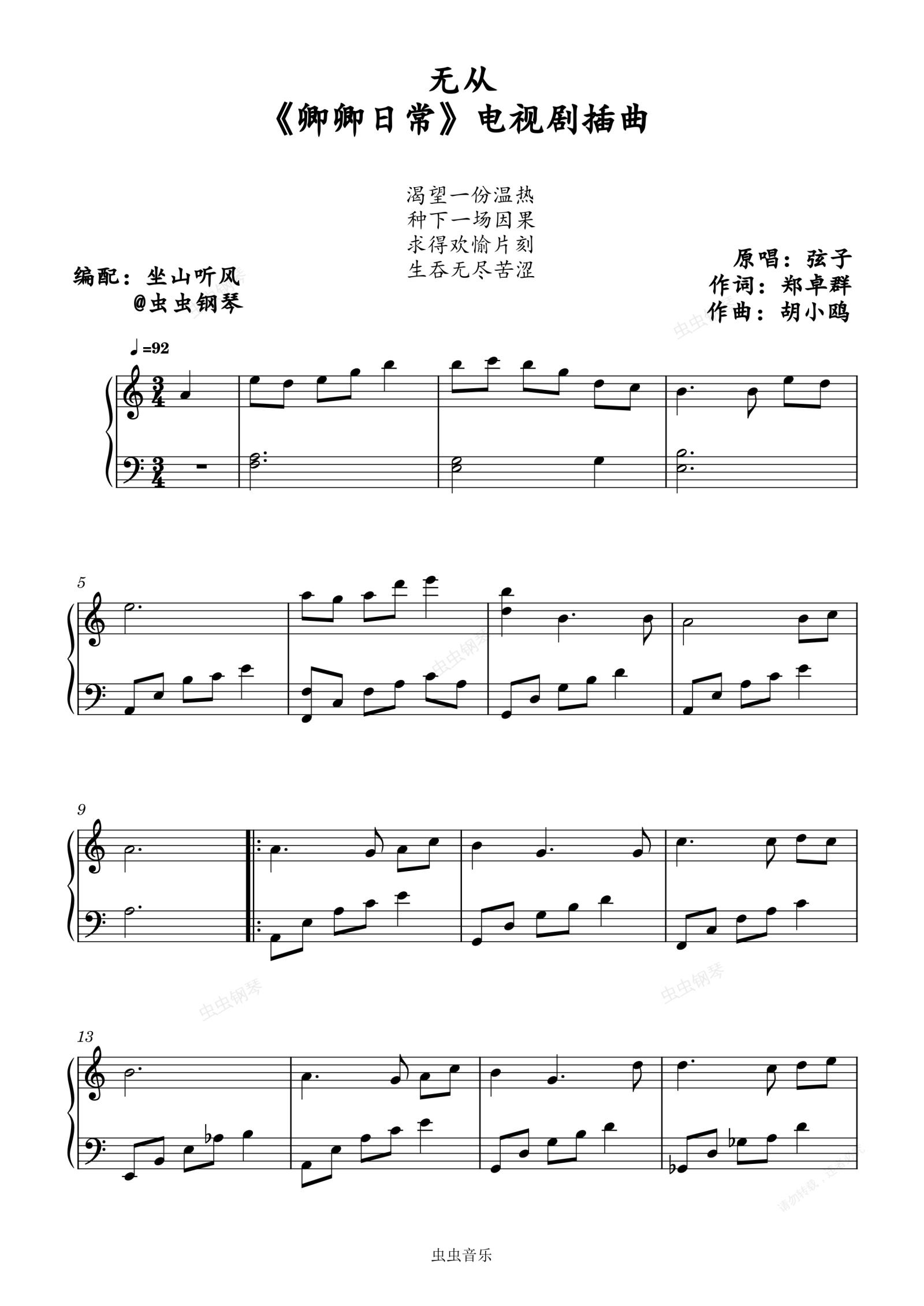 钢琴谱:无从 ——电视剧《卿卿日常》插曲