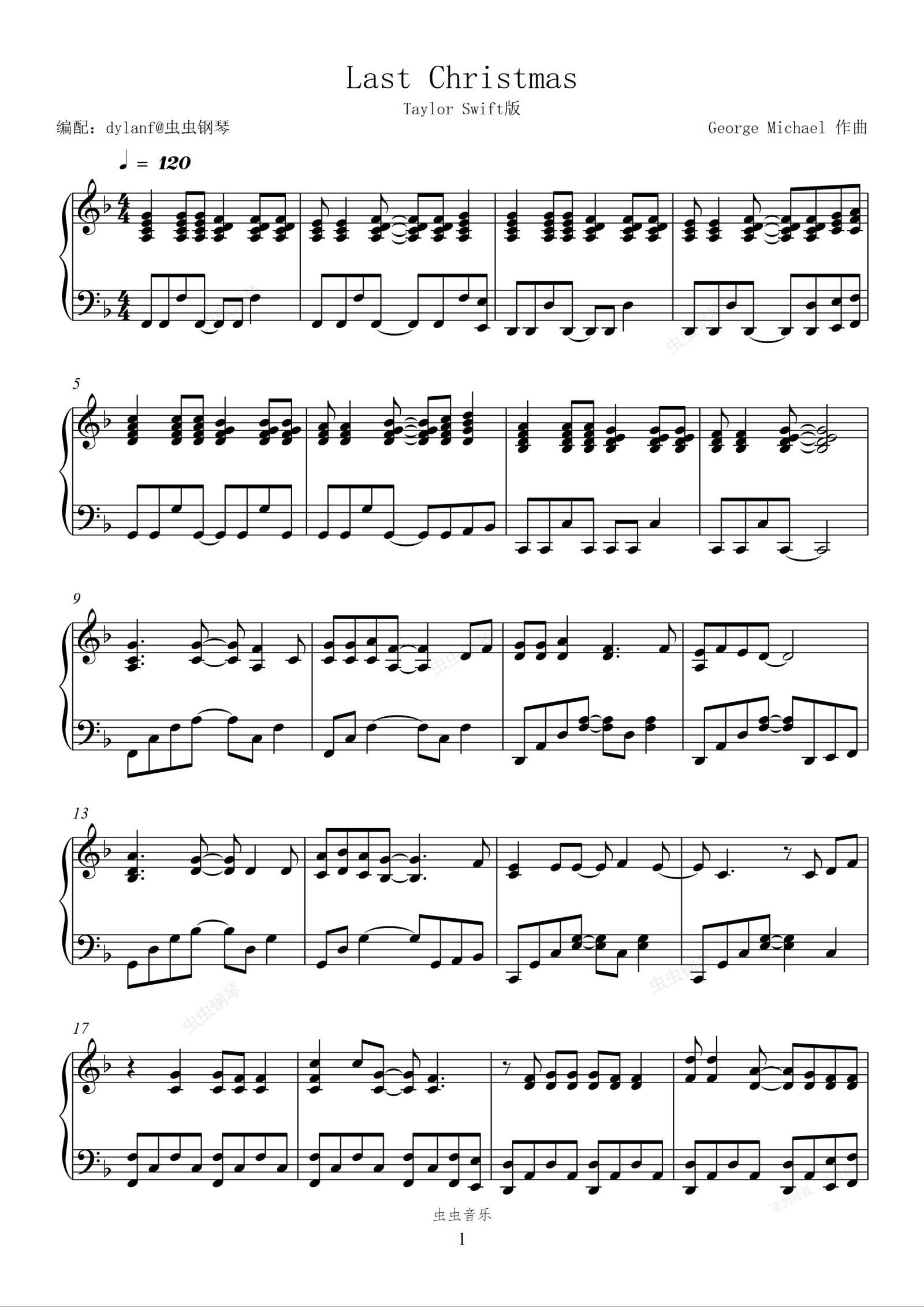 钢琴谱:Last Christmas(原调99%)Taylor Swift Ariana Grande George Michael圣诞快乐 Merry Christmas