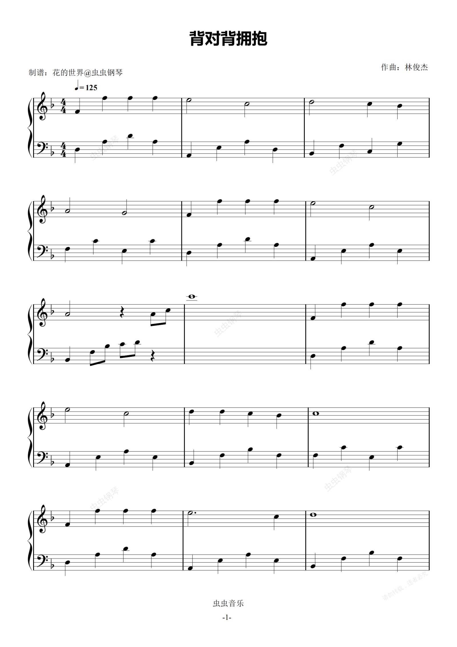 钢琴谱:背对背拥抱 原调简易版 林俊杰