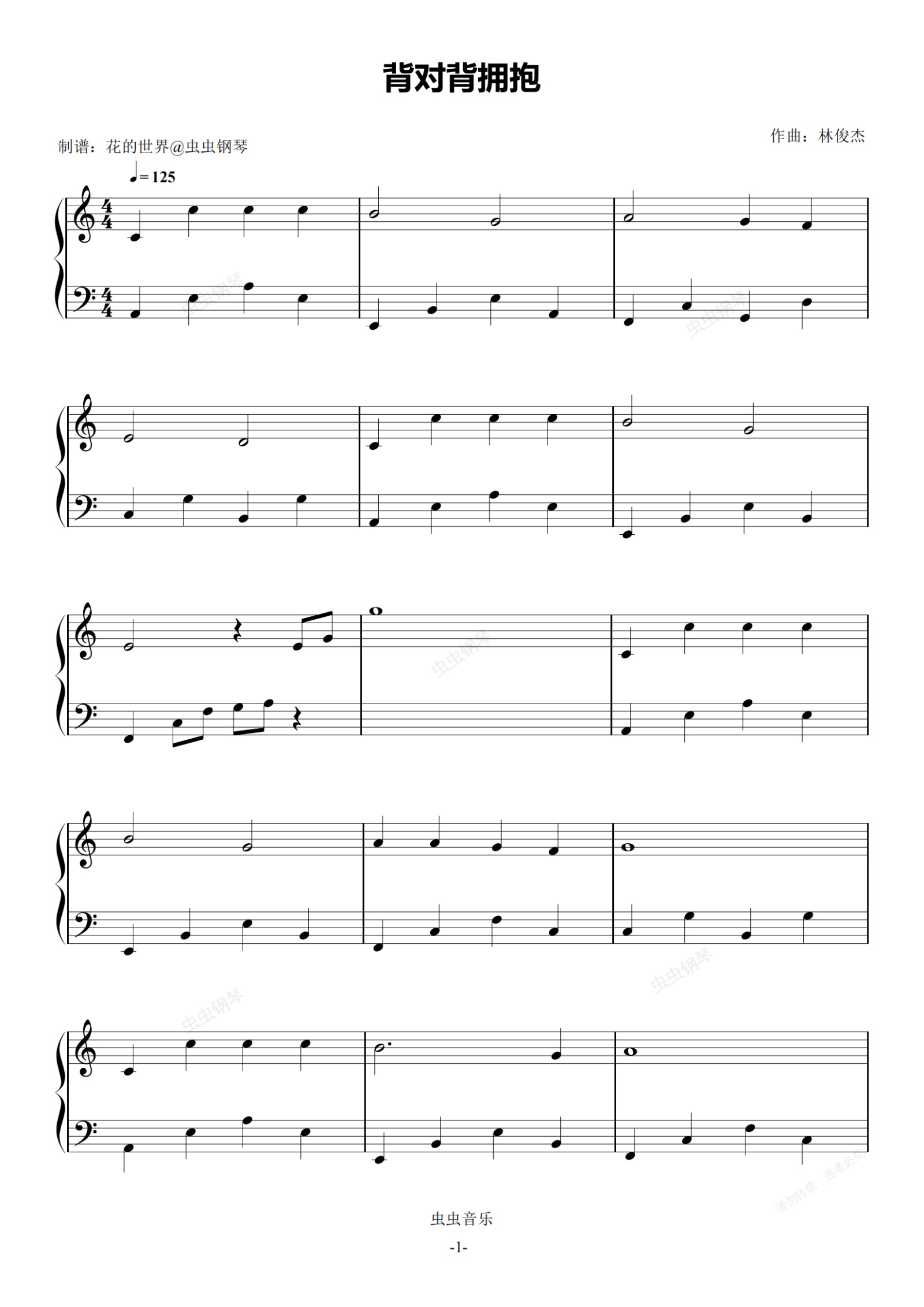 钢琴谱:背对背拥抱 C调简易版 林俊杰
