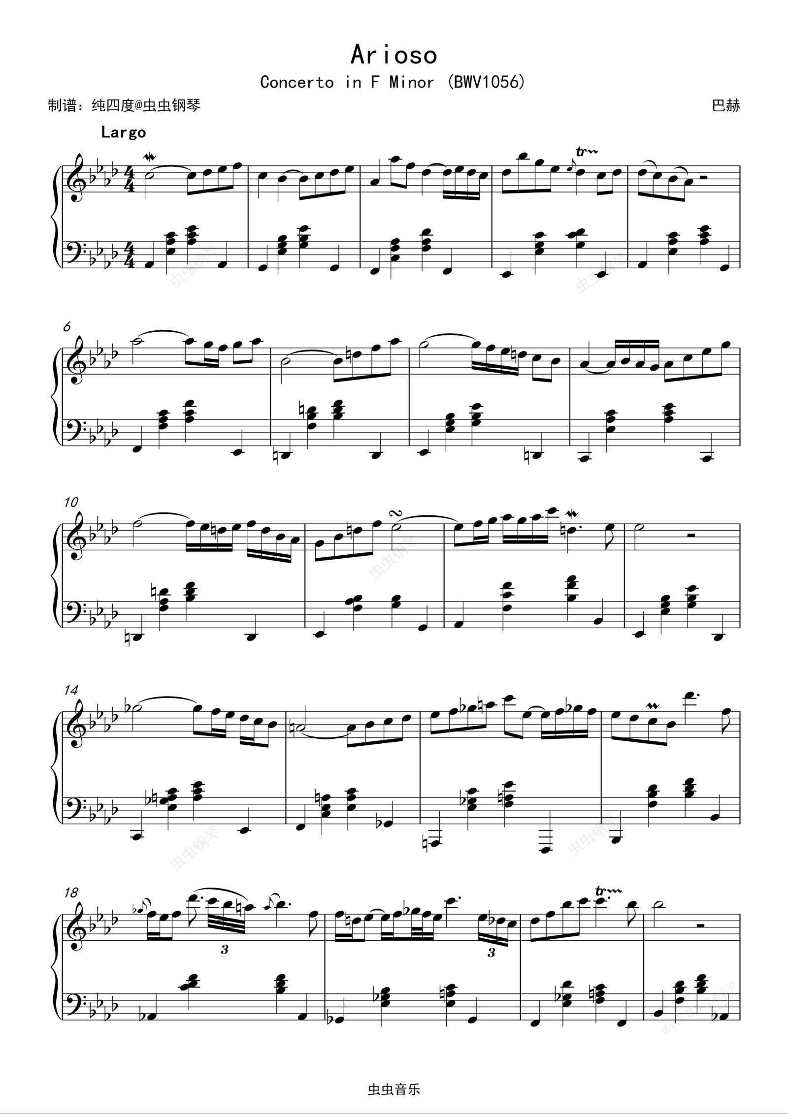 钢琴谱:巴赫 f小调第5号钢琴和管弦乐队协奏曲 BWV1056 Concerto For Piano And Orchestra No. 5 In F Minor, BWV 1056:II. Largo